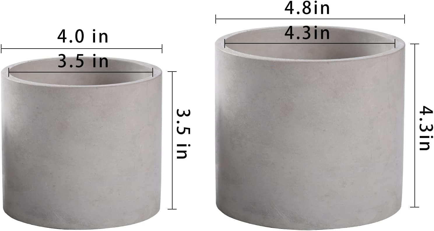 - 【Extensive Uses】 This cement flower pot is available in five different sizes, 3.5 in,4 in ,5 in, 6 in and 9 in, making it easy to choose the right home for your plant. Design for decorate windowsill, tabletop, shelf, bedroom, kitchen, garden, office and outdoor patio