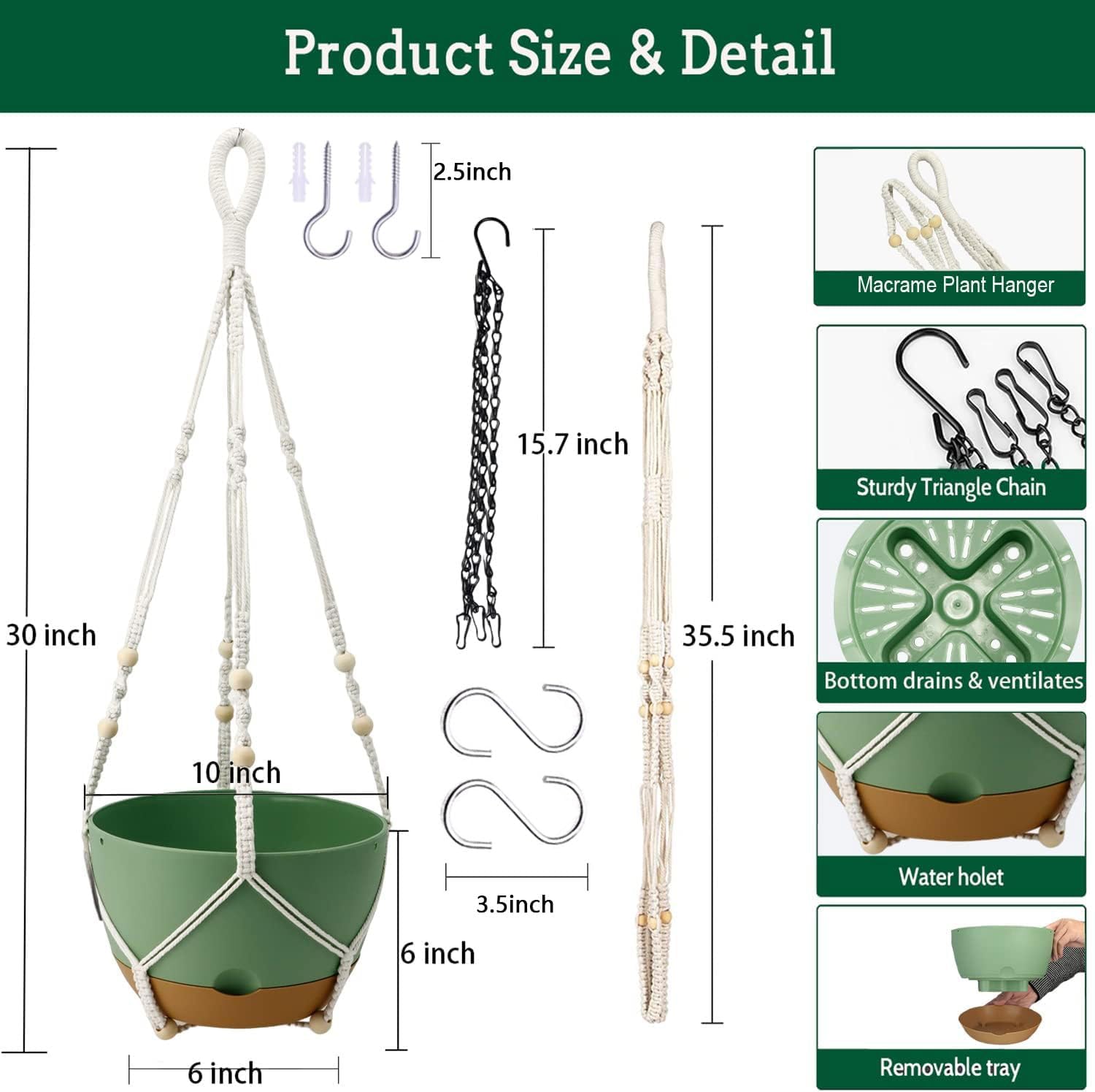 - Dual Watering & Ventilation Holes: There is a hole between the bottom of each hanging planter and the tray, which is both a watering hole and a ventilation hole. It not only controls root aeration but also promotes plant growth.