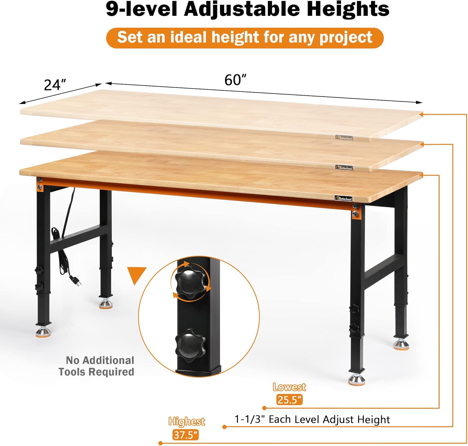 - Color : Rubber Pad丨power Outlets丨60"x24"x37"