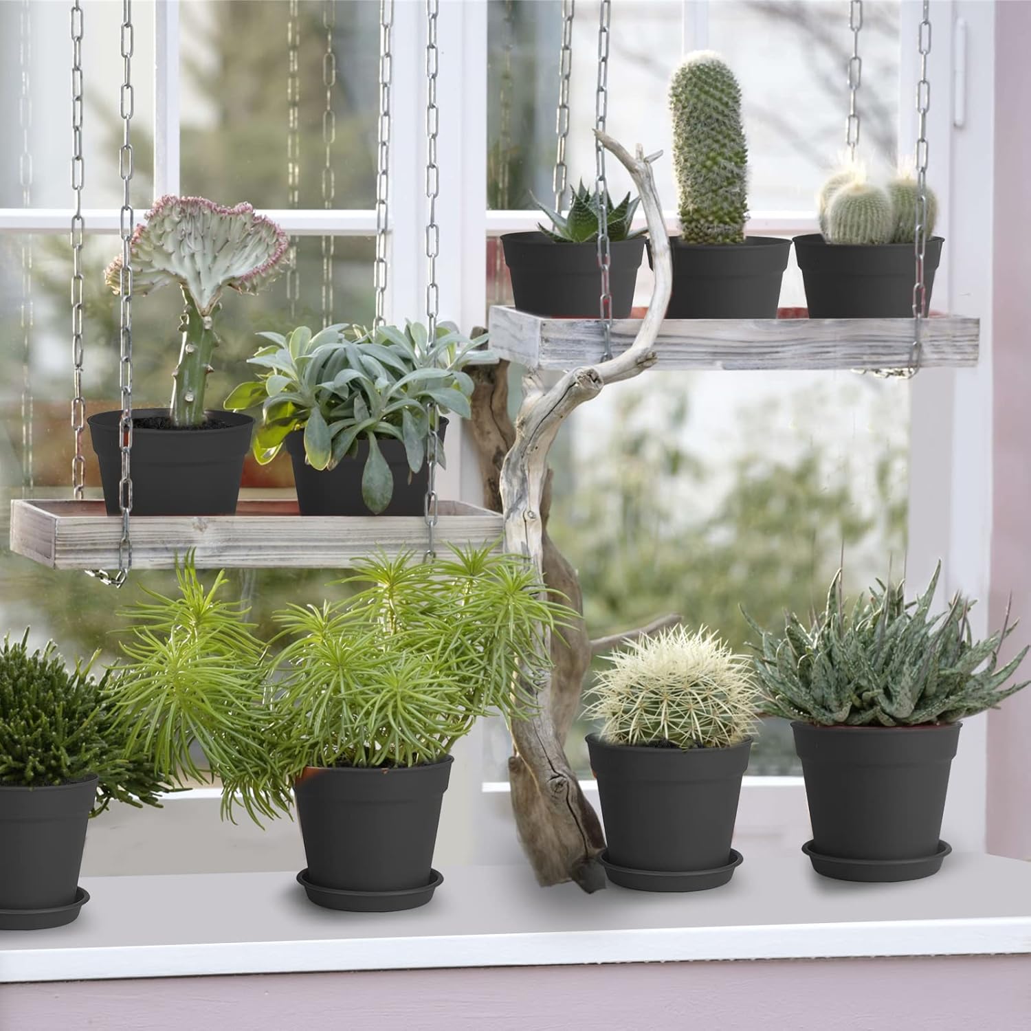 - [Small Planters with Drainage Holes] We improved the drainage holes, thickened the bottom, plants can breathe freely, prevent excessive watering, maintain soil drainage and ventilation, and ensure that plants do not rot roots. With trays to catch the extra water and keep the table clean.