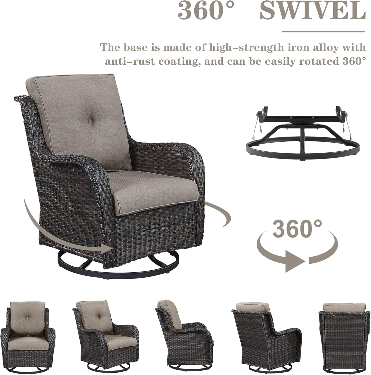 4 Pieces Patio Furniture Sets, Wicker Patio Swivel Glider Chair with Ottomans, Outdoor Furniture Set for Outside Porch, Deck, Balcony, Garden