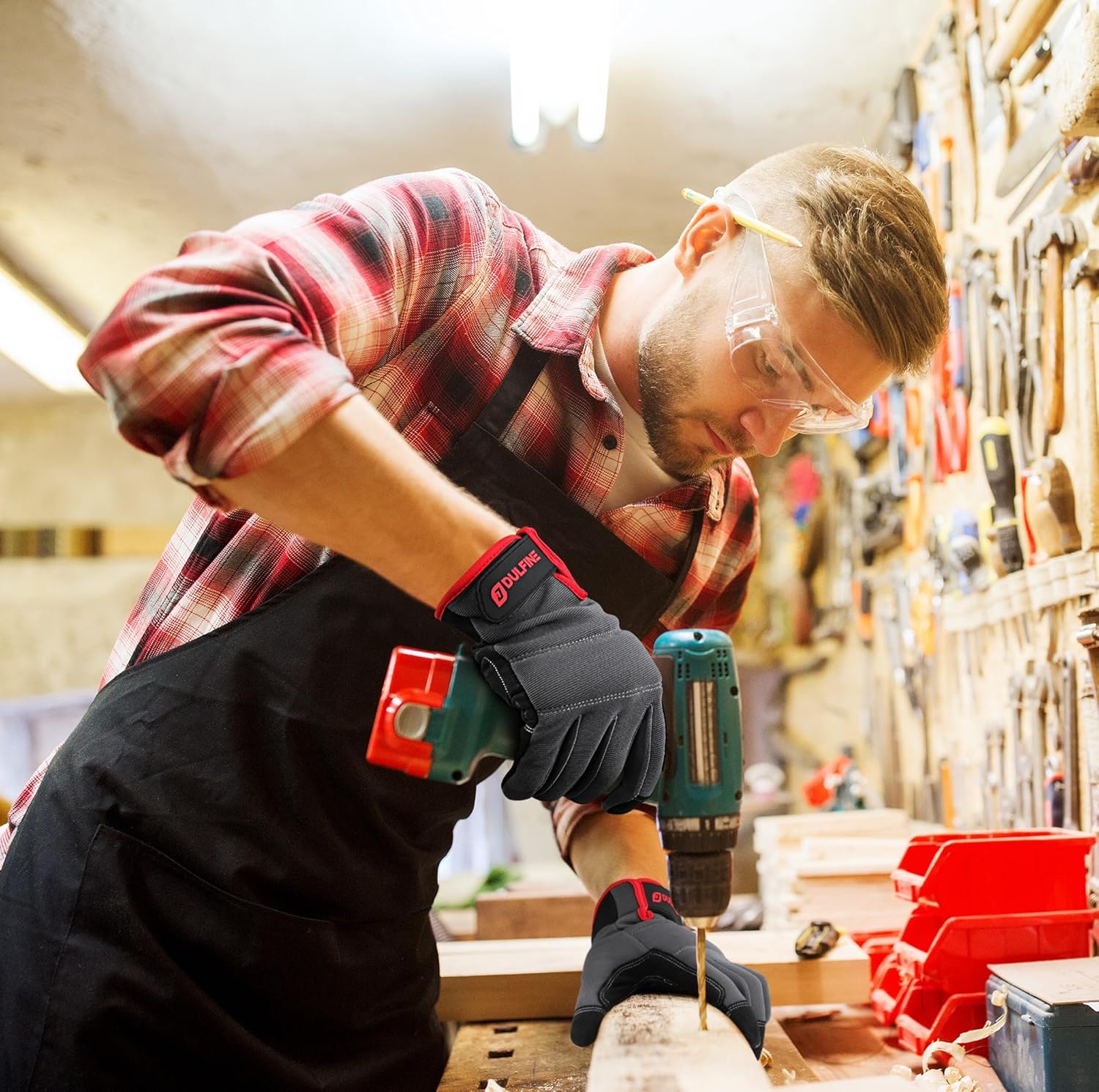 DULFINE Flex Grip Mechanic Work Gloves for Men,Black and Red Utility Safety Working Gloves Touch Screen,Excellent Grip,Ideal for Working on Cars and Outdoor Jobs(Small)