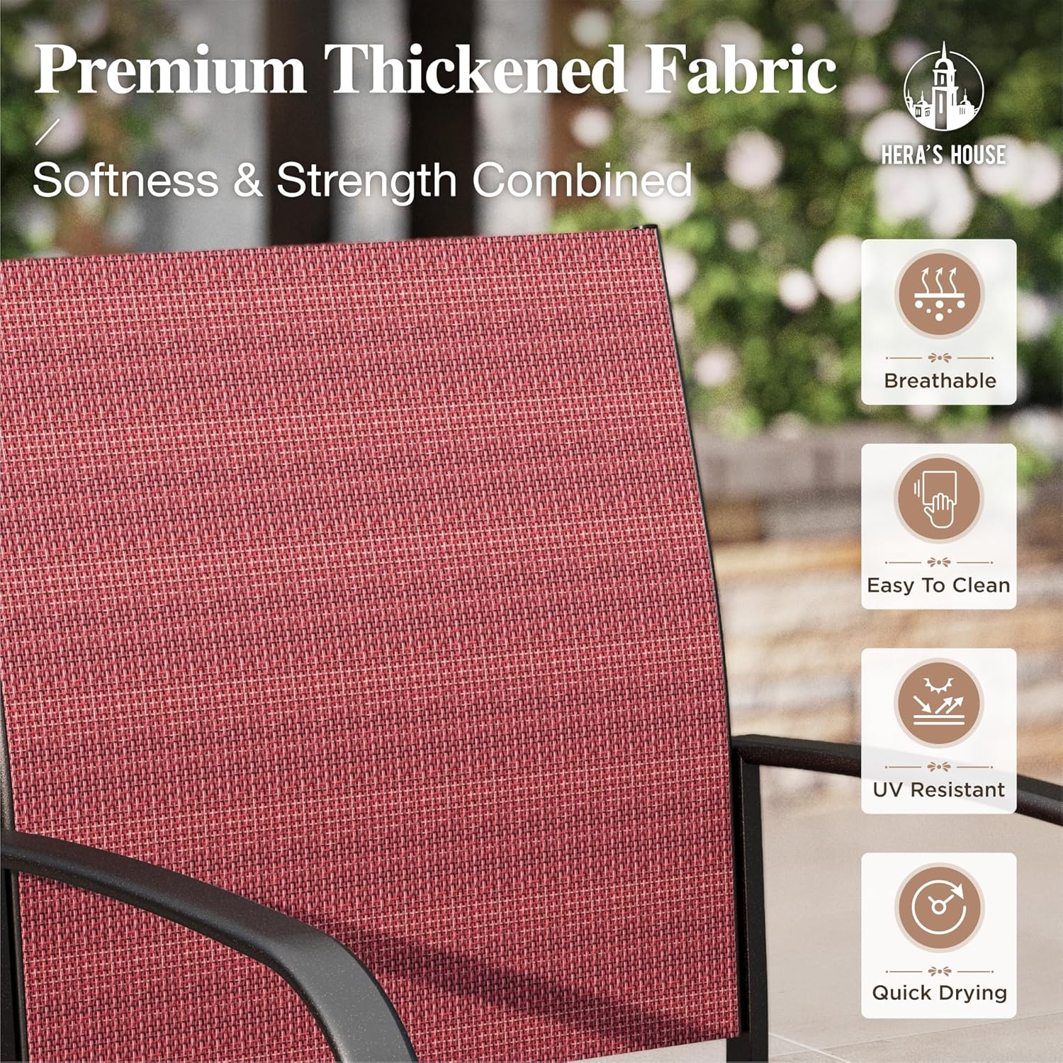 - ăTEXTILENE FABRICS FOR ALL WEATHERă100% 550GSM quality thicken textilene fabrics,durable, waterproof, breathable and all weather resistant; easy to clean and care, UV resistant and no fading for long lasting.