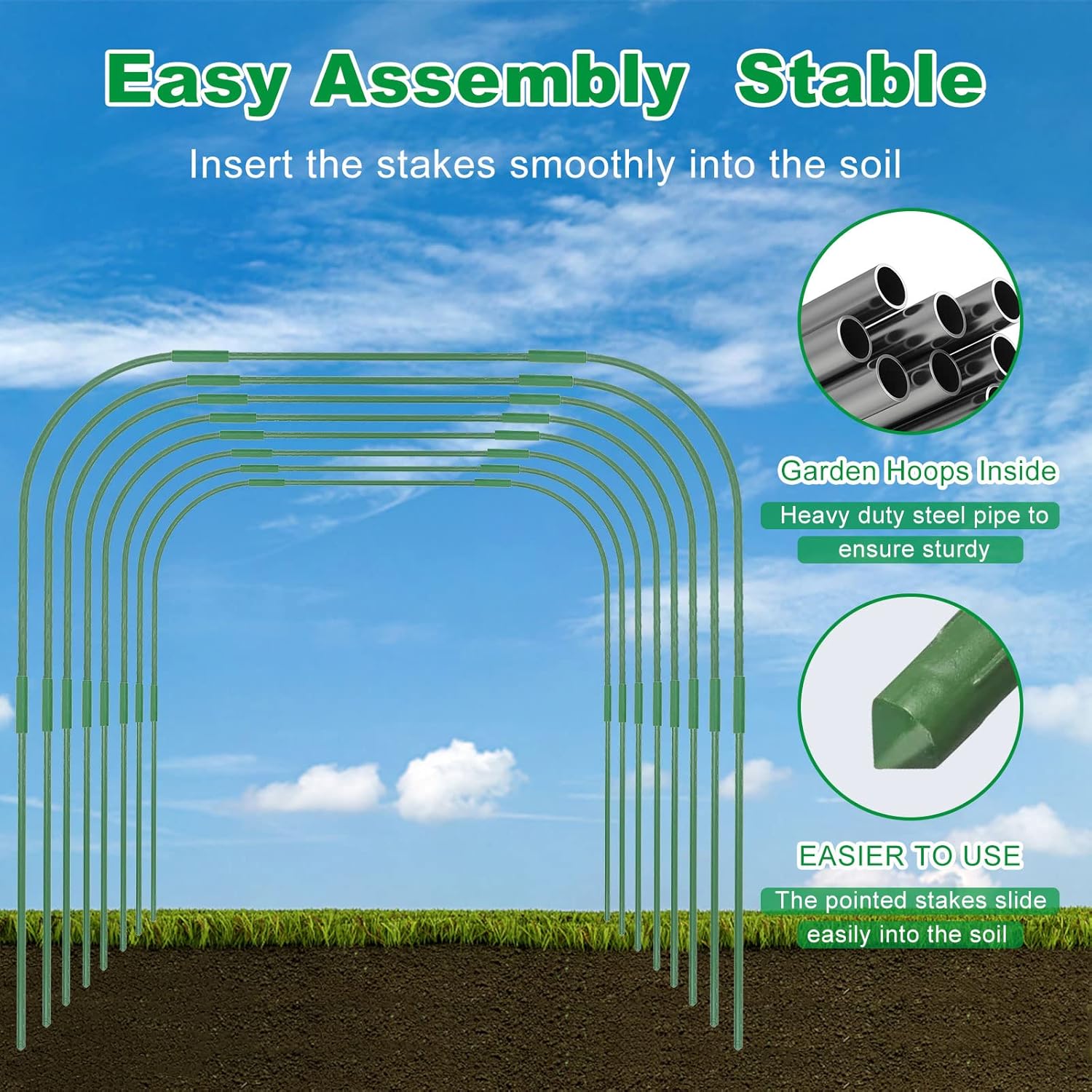 - š±ćMULTIPLE APPLICATIONSć:Greenhouse Hoops Grow Tunnel is suitable for indoors and outdoors, fit for yard, vegetable garden and raised garden beds. Creates a favorable microclimate for your plants.