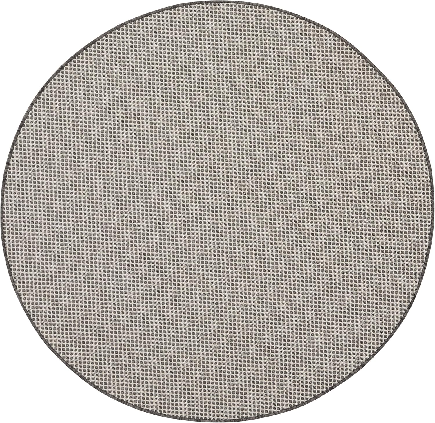 Nourison Home Courtyard Indoor/Outdoor Ivory/Charcoal 4' x Round Area Rug, Easy Cleaning, Non Shedding, Bed Room, Living Room, Dining Room, Backyard, Deck, Patio (4 Round)