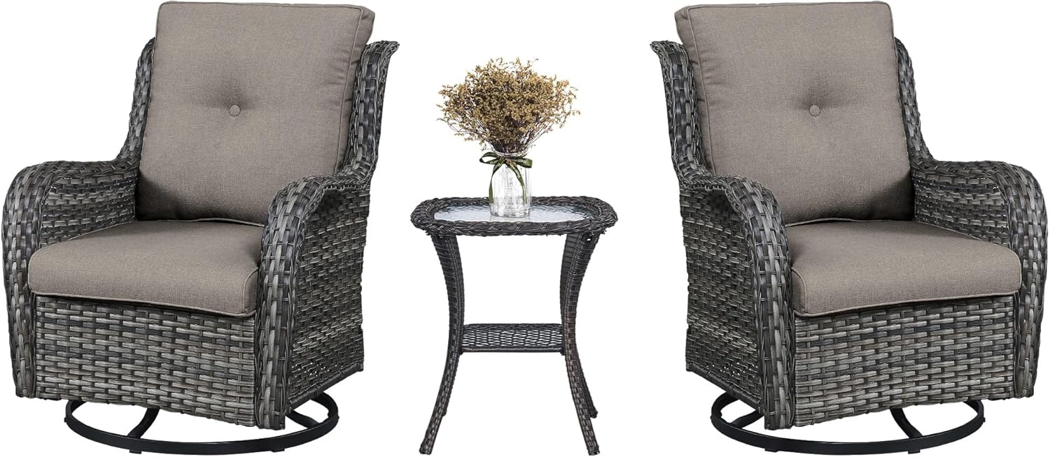 3 PCS Patio Furniture Set - Mixed Grey Wicker Swivel Rocking Chair Set with Side Table