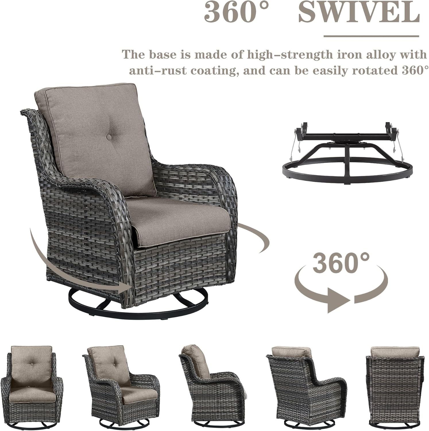 - Sturdy Wicker Furniture: Outdoor patio furniture sets are made of weather-resistant PE wicker that is extremely durable and resistant to water and fading. Sturdy powder-coated rustproof steel provides strong support, offering a 350 lbs load capacity per chair.