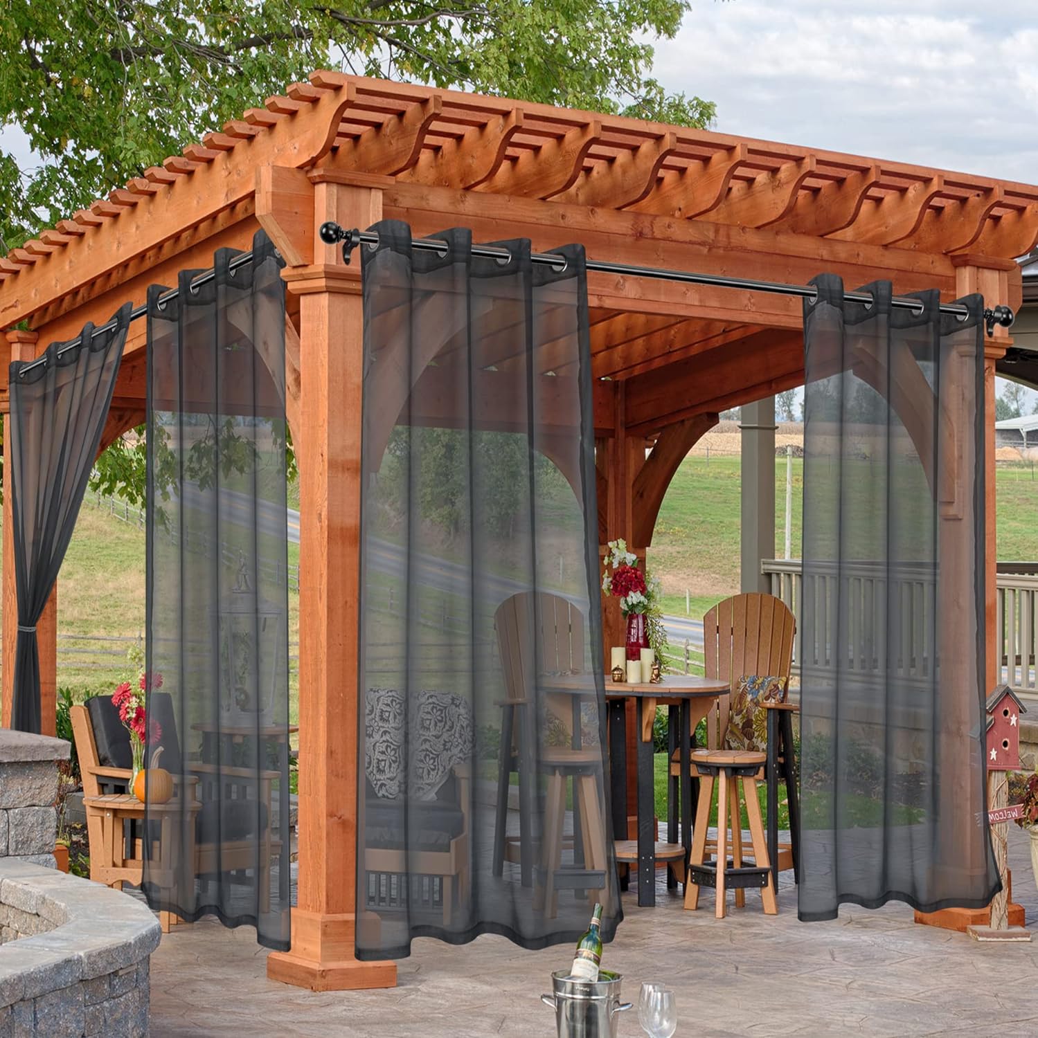 HolidayIdeas Outdoor Sheer Curtains for Patio Waterproof, 4 Panels - 54 x 84 Inch - Grey Light Filtering Voile Outside Curtains Grommet Drapes for Front Porch, Gazebo, Pergola, Backyard