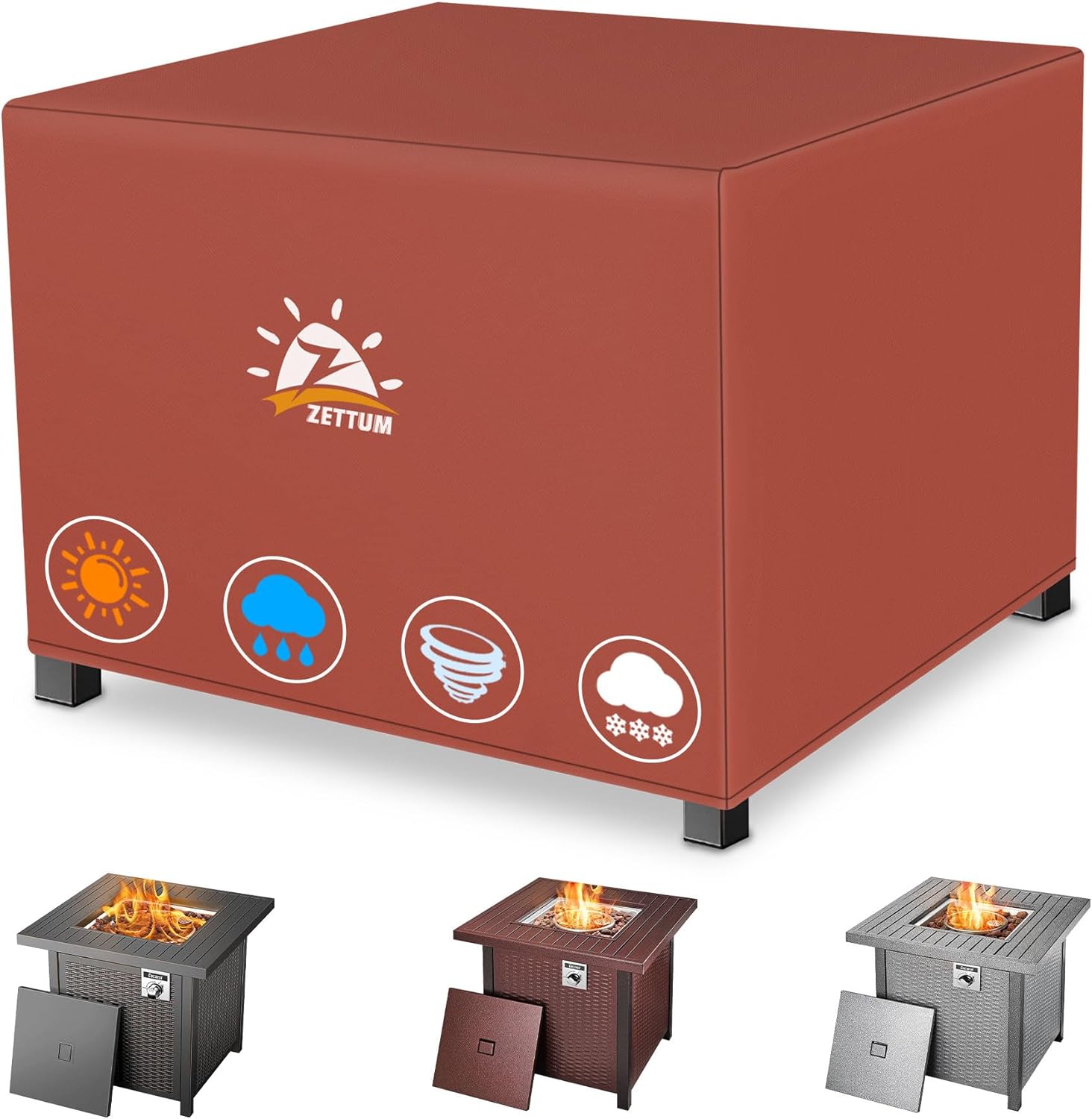 - | Easy to Put On with Great Protection | - Designed by our Firepit experts team, Zettum patio fire pit covers for outside are very easy to put on and put off. With the cover on your Firepit equipment, no more worry about the sunlight, rain, snow, wind, dust, resin, leaves, debris and bird droppings etc. Zettum will be the tough protector of your fire pits!