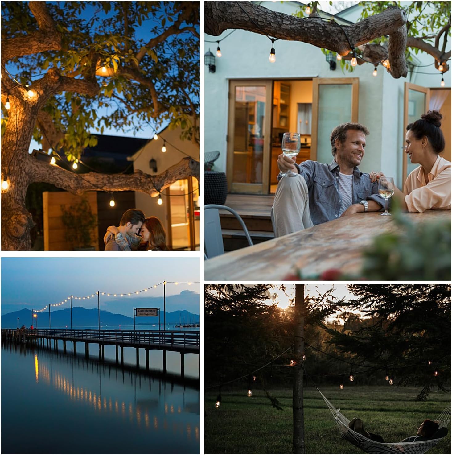 - ăWeatherproof&ShatterproofăEdison light string can create a romantic atmosphere for you, which can bear sun, wind, rain, snow or other extreme temperature during outdoor using. S14 plastic bulbs are shatterproof and durable