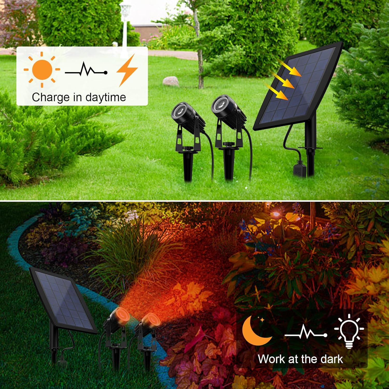 - 【Excellent Stability】 This solar powered landscape lights is made of metal and glass, whether installed on the wall or fixed to the ground, it has excellent stability and durability.