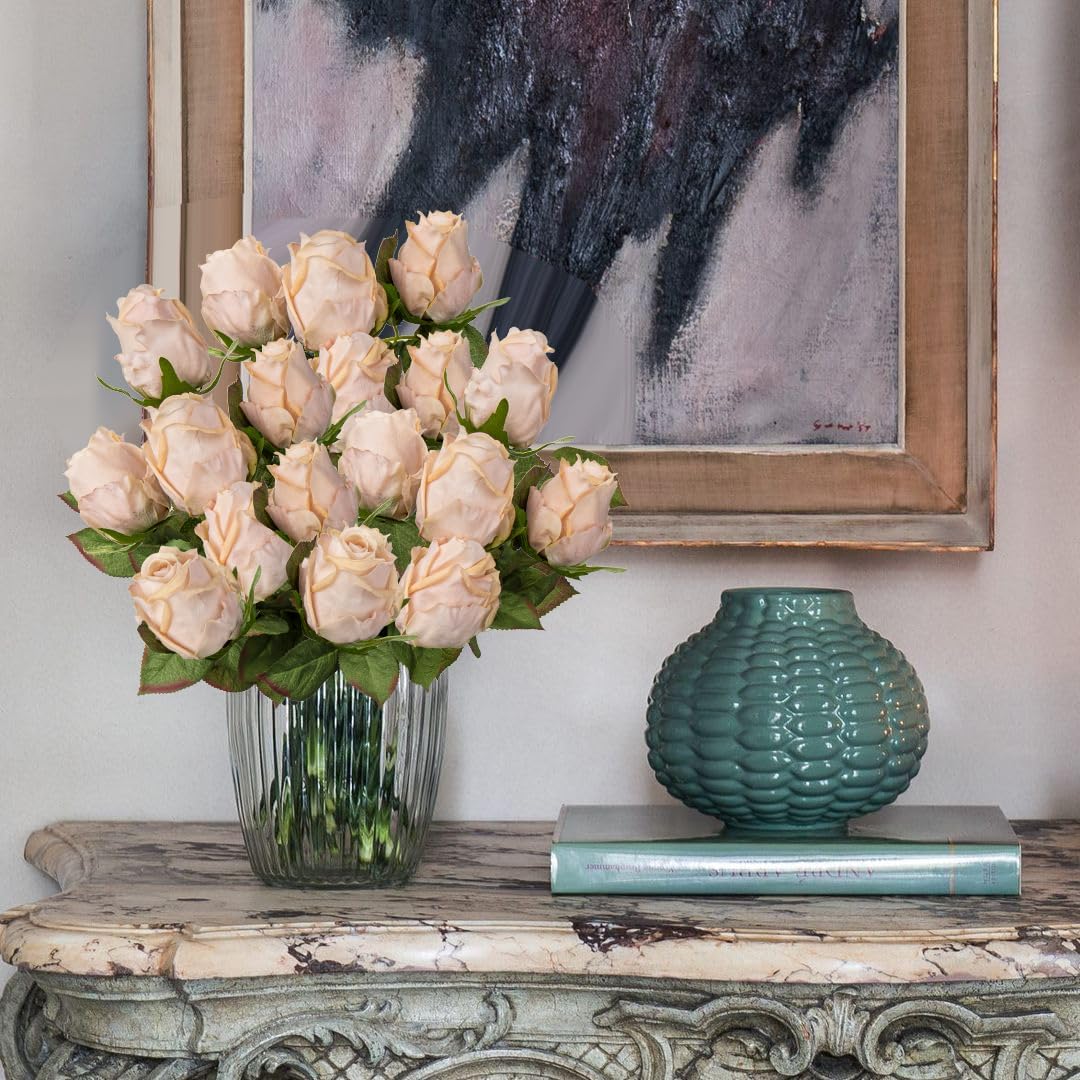 - 🌹 REAL TOUCH FABRIC - This real touch roses artificial flowers are made of special smooth velvety feel fabric Instead of silk, combining special craftsmanship to make artificial roses with stems fresh touch and soft petals. This material is eco-friendly, weatherproof,non-toxic and has no abnormal odour.Our artificial single rose are so beautiful and perfect you will truly think they are real