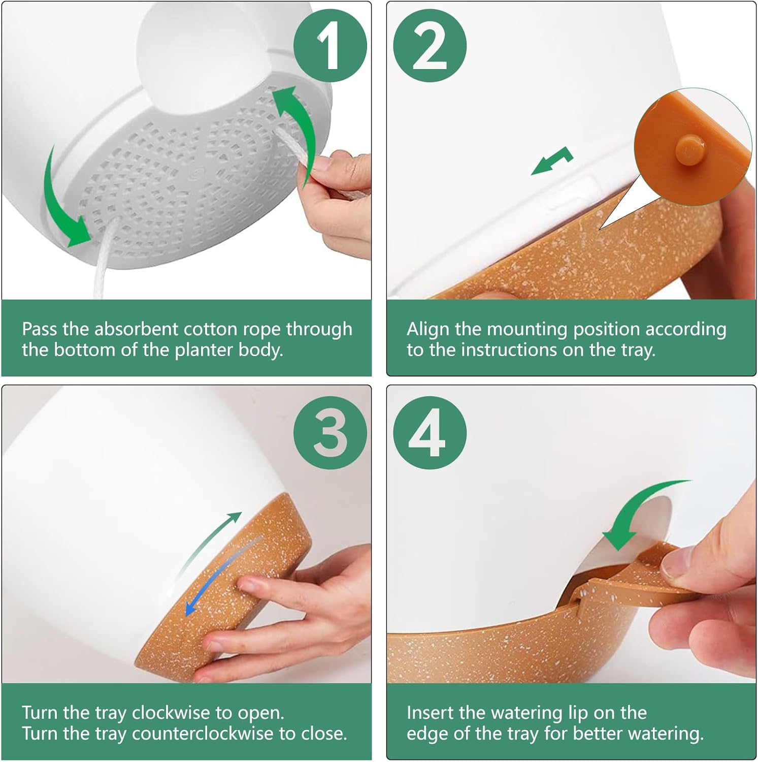 - SUN-E Self Watering Planters, precisely brings you such a tranquil oasis.Not just a tool for nurturing plants,but also a manifestation of the aesthetics of life.The planters seamlessly integrate the beauty of nature with modern design elements.The varying sizes offer flexibility in arranging plants,the contemporary finish adds a touch of sophistication to any space.With their optimal drainage and watering system,the planters provide the ideal environment for your beloved indoor plants to thrive.