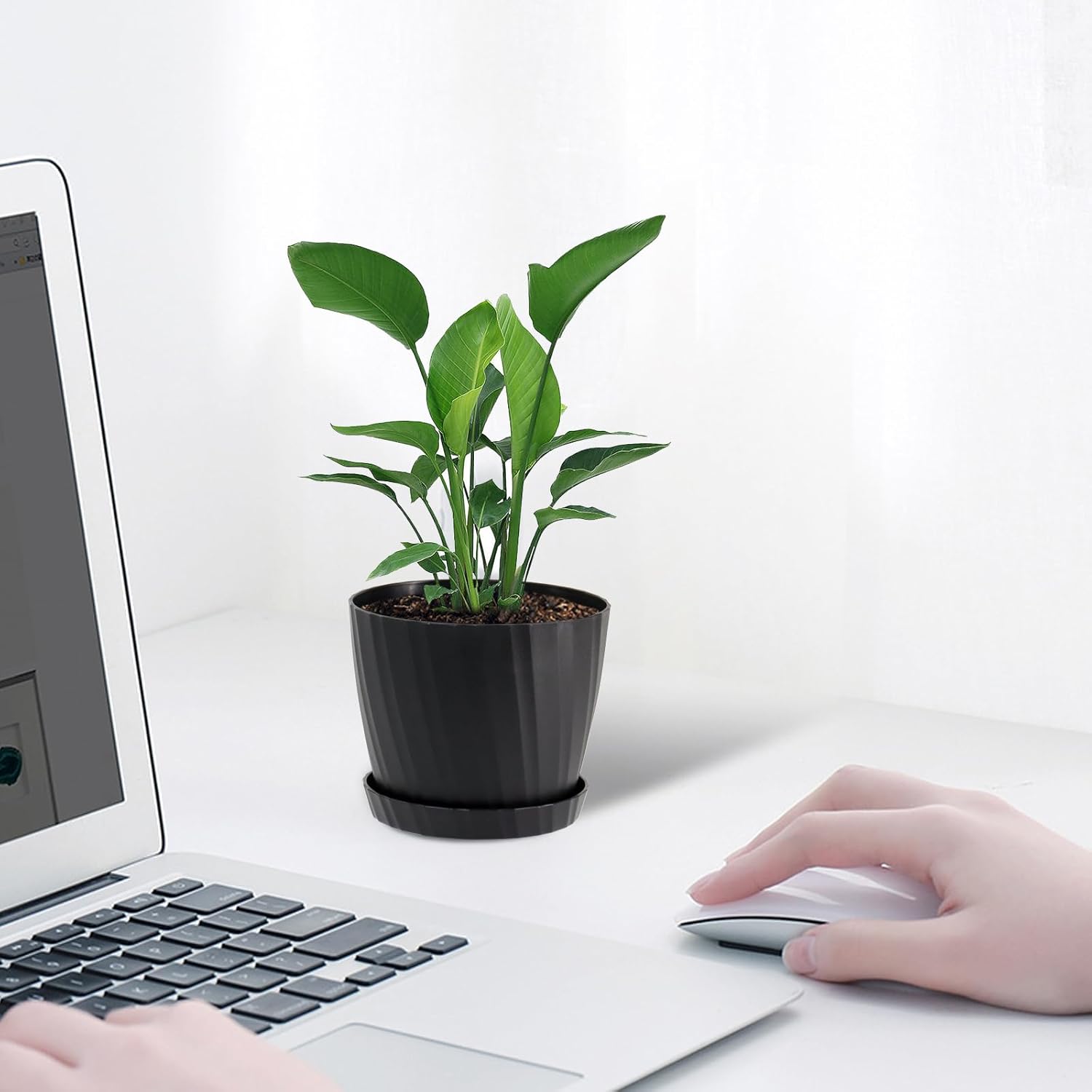 - MODERN MINIMALIST DESIGN - White matte finishing surface plant pot with strip pattern and round shape design bringing out a modern minimalistic styled and elegant. And bottom surface has feet like lines to prevent from sliding. This plastic planter will bring a modern and stylish visual. Great for all house plants.