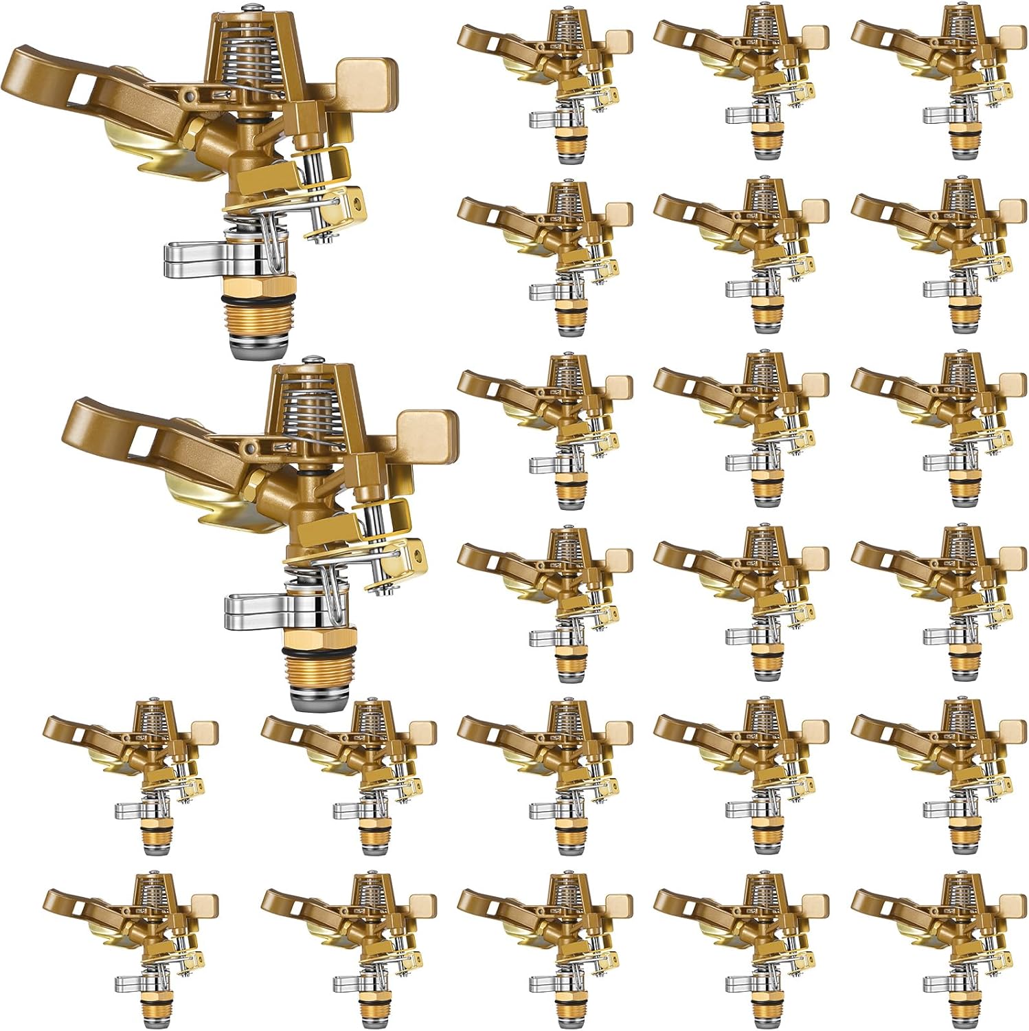 Ferraycle 24 Pieces 1/2 Inch Brass Impact Sprinkler Head with Nozzles Heavy Duty Adjustable 0-360 Degrees Impulse Sprinkler Head Lawn Watering for Yard Irrigation