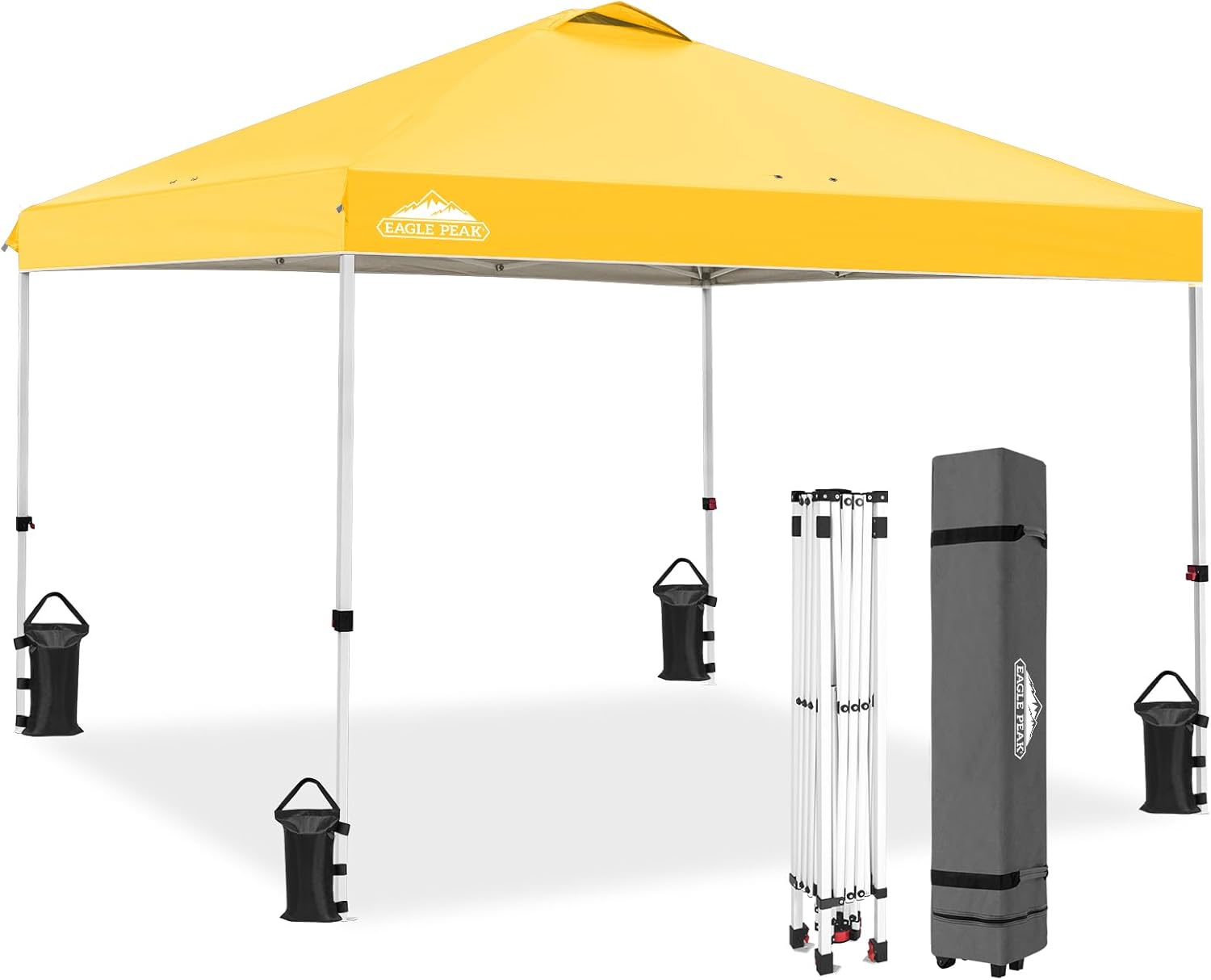 EAGLE PEAK Pop Up Canopy Tent with Wheeled Carry Bag, 8 Stakes, 4 Ropes, 4 Weight Bags, Easy Set Up Tent Canopy, 10x10 ft, 100sqft of Shade, Yellow