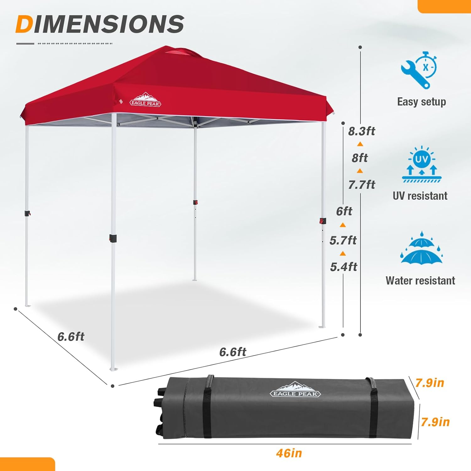- VENTED TOP WITH 3-HEIGHT SETTINGS: Stay cool with our EAGLE PEAK VENT that allows for greater airflow while you work or relax. The straight leg allows for 3 height options: high 8.3 ft, medium 7.97 ft, low 7.65 ft