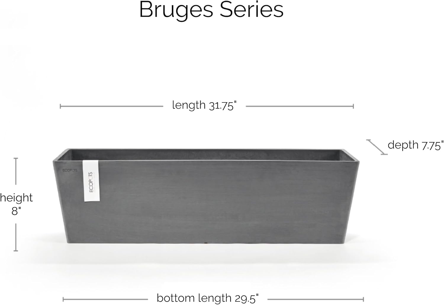 Ecopots Bruges Durable Modern Rectangular Indoor/Outdoor Recycled-Based Composite Flower Pot Planter, Grey, 31.5"