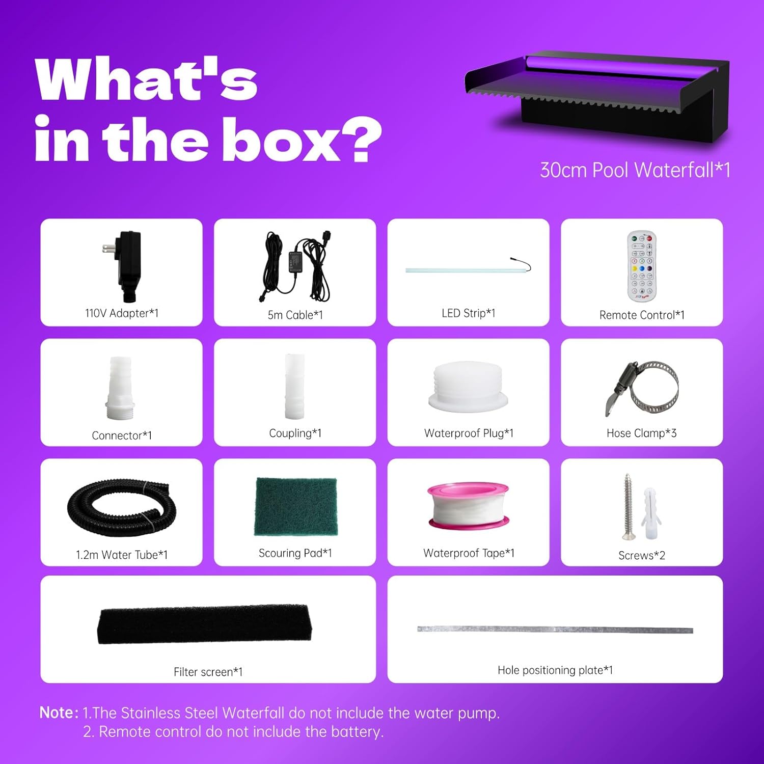 - ⏩Decoration Pool Waterfall⏪ Pamopamo waterfall spillway makes your garden swimming pool and koi pond elegant, fashionable and beautiful. The color change of LED lights and the gentle sound of water running make your patio more special at night.