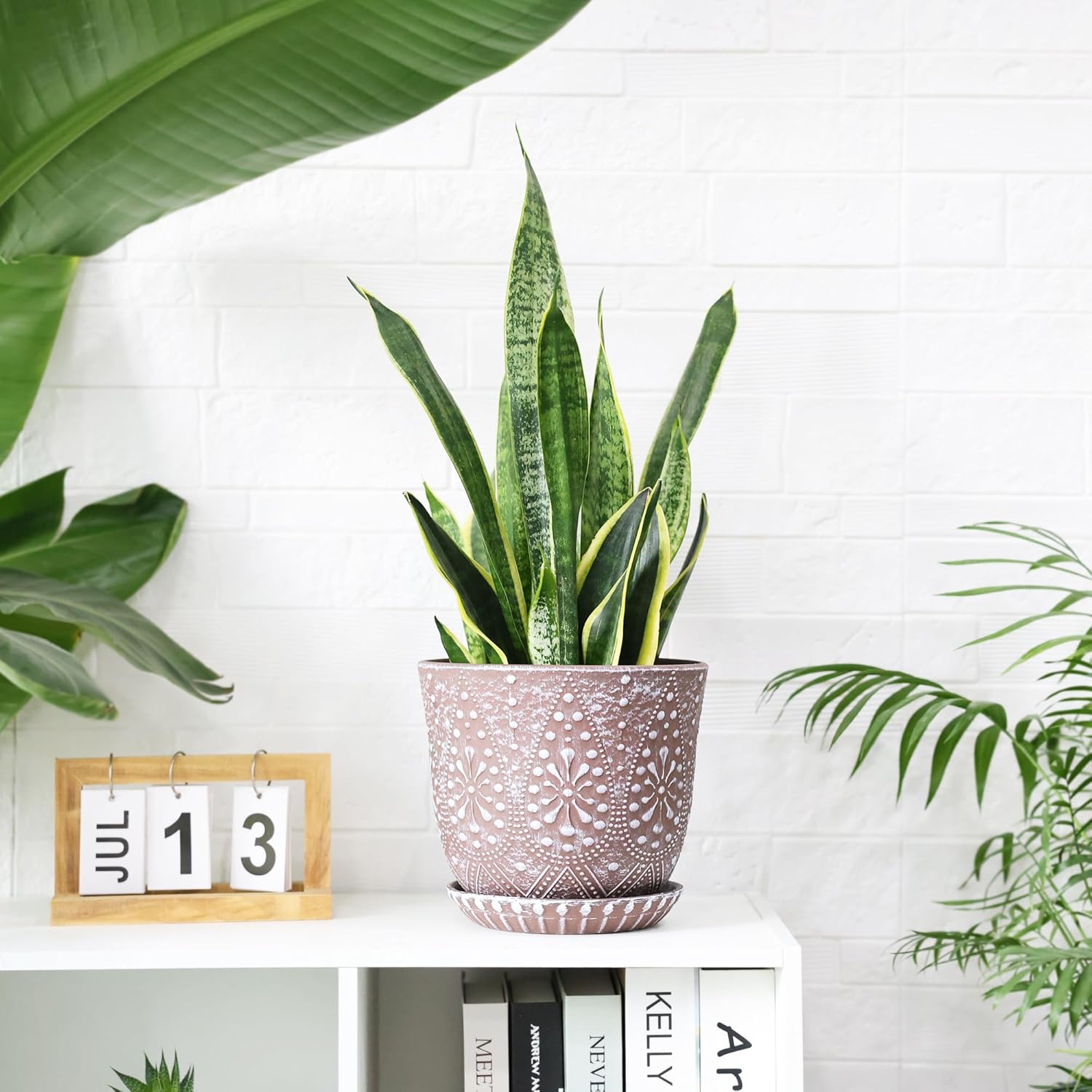 - 8 inch Planter With Drainage Holes and Mesh Pad: Large drain holes are good for draining, and with leak-proof mesh pads, it keeps soil from running away, suitable for orchids, succulents, cacti, other flowers and green plants, perfect for home decoration.