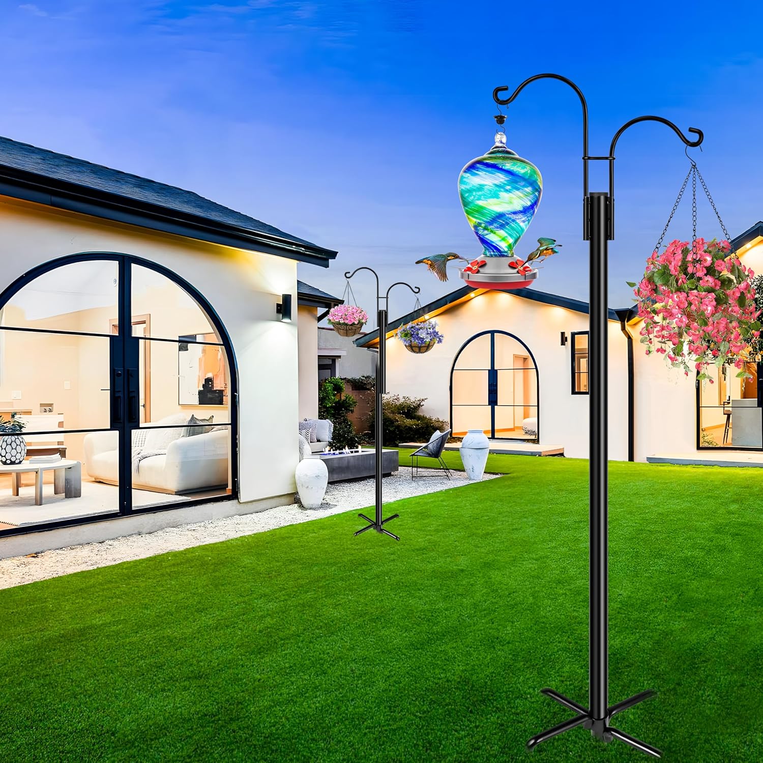 - Versatile And Multi Purpose: Thanks to the sturdy build coupled with the double arm design, our shepherds hook for outside provide the perfect fit for hanging solar lanterns, flower baskets, plant pots, hummingbird feeders, wind chimes, and more to complement any outdoor space