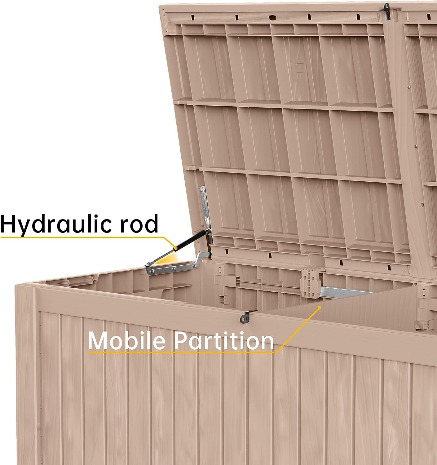 182 Gallon Deck Box Waterproof, UV Resistant Resin Outdoor Storage Box with Hydraulic Rod, Lockable Design and Enhanced Durability for Patio, Garden, and Poolside Use