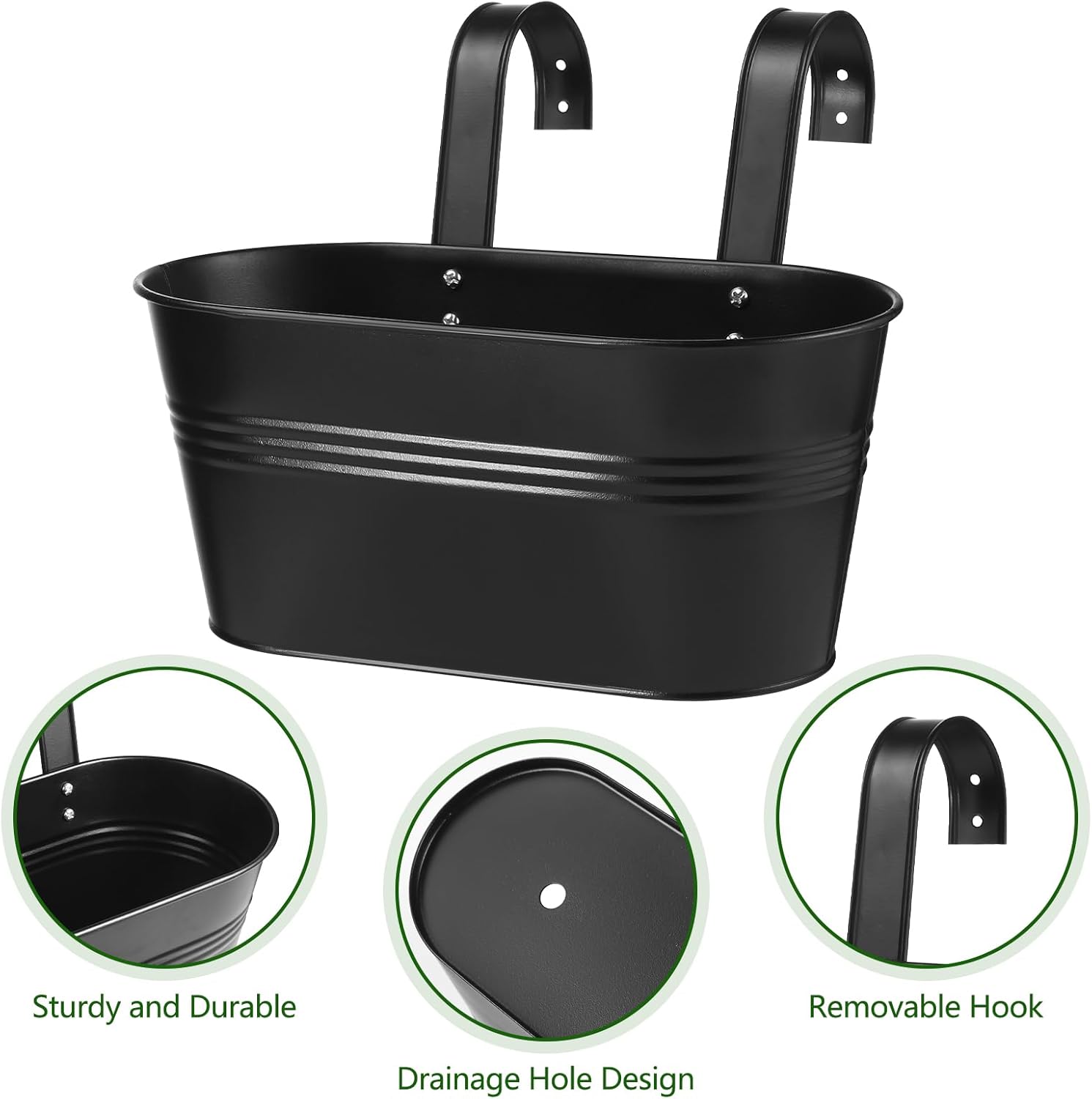 5 Pcs Hanging Planter Railing Planter Box Metal Iron Window Boxes Planters for Outdoor Plants Balcony Planter Fence Planters with Detachable Hooks for Herb Garden Planter Outdoor(Matte Black)