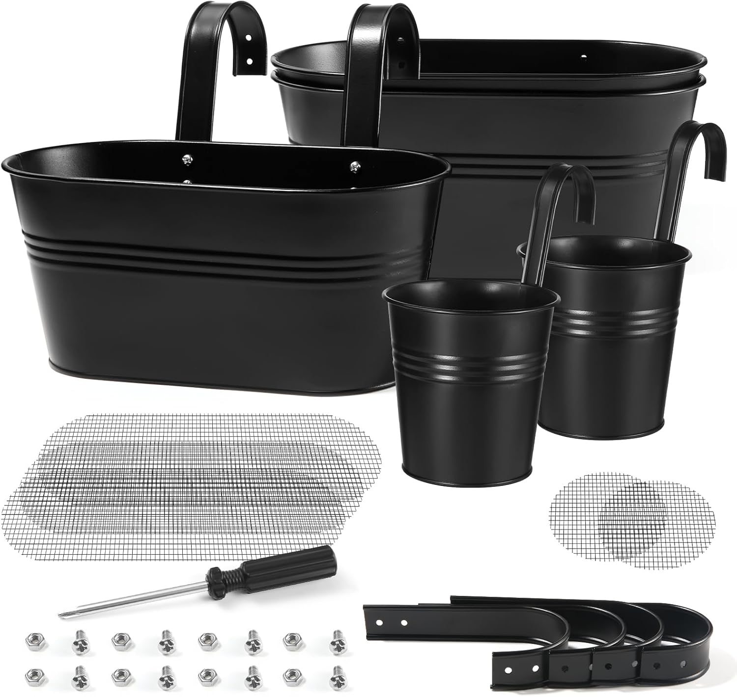 - 【High Quality】The balcony planters are made of high-quality galvanized iron material, which is not easy to rust. The color of the flower pot adopts matte spray painting process, modern aesthetic style, classic black and white, beautiful and attractive.This planter is great for home or apartment use and helps you make the most of your porch or patio living space. Grow a mini garden in an elevated space.