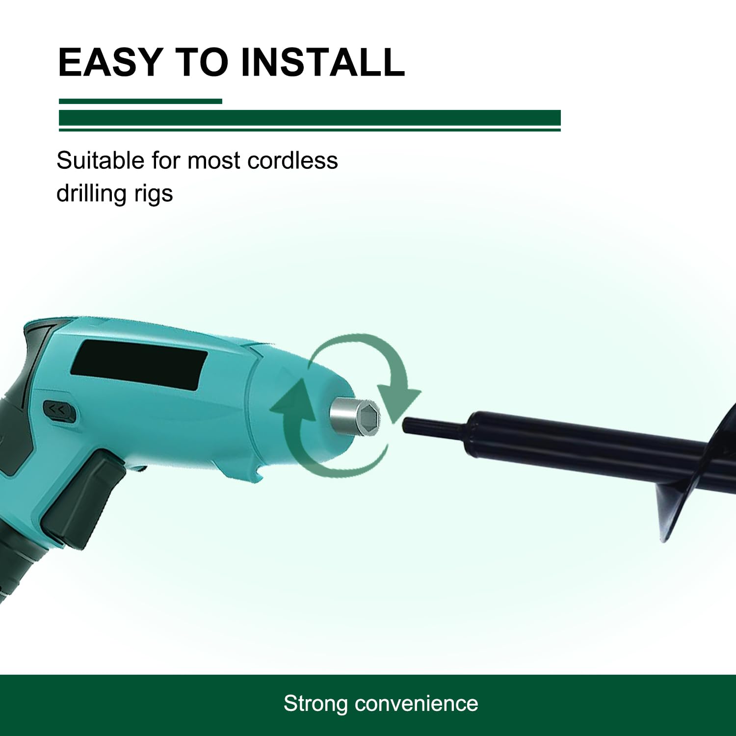 - 【Easier to Use - For 3/8'' Hex Drill Driver】- Enjoy the easy installation! Just insert the auger drill bit into the hex drill driver, tighten it, and rotate it to remove the soil. Repeat drilling until the desired planting depth is achieved. 18V or greater drill recommended. When idle, keep the auger clean and free of soil & debris to prevent oxidation.