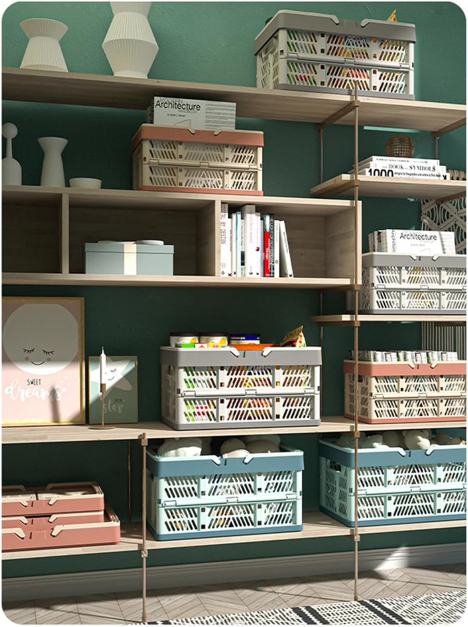 Foldable Handle Storage Crate Bin - 20L Collapsible Plastic Crate Stacking Storage Basket - Pink & Rose M