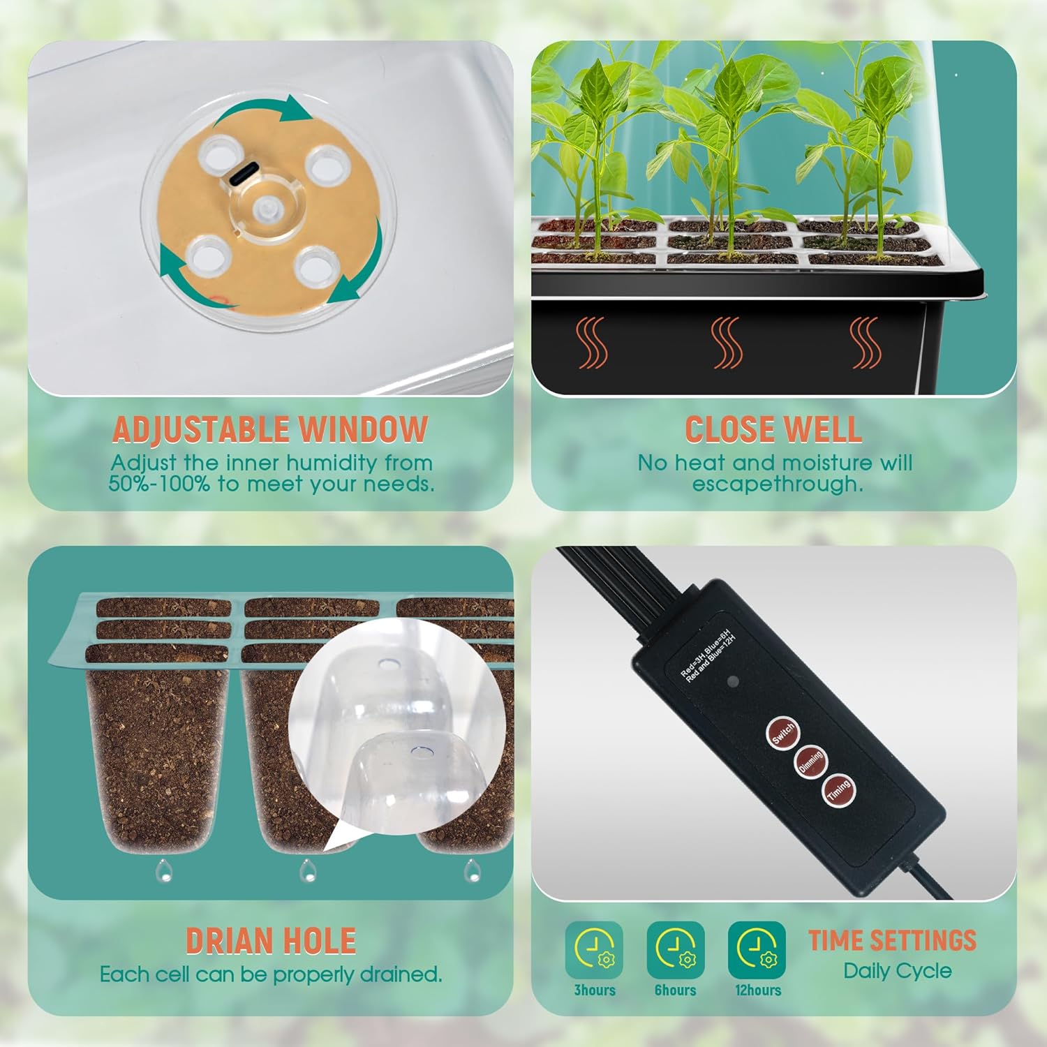 - 🌱【Unique Design】-Adjustable window let you can adjust the inner humidity from 50%-100% to meet your needs. Transparent seed stray lets you keep an eye on the growth. Drain holes at bottom for better drainage. So you have total control over the growing process.
