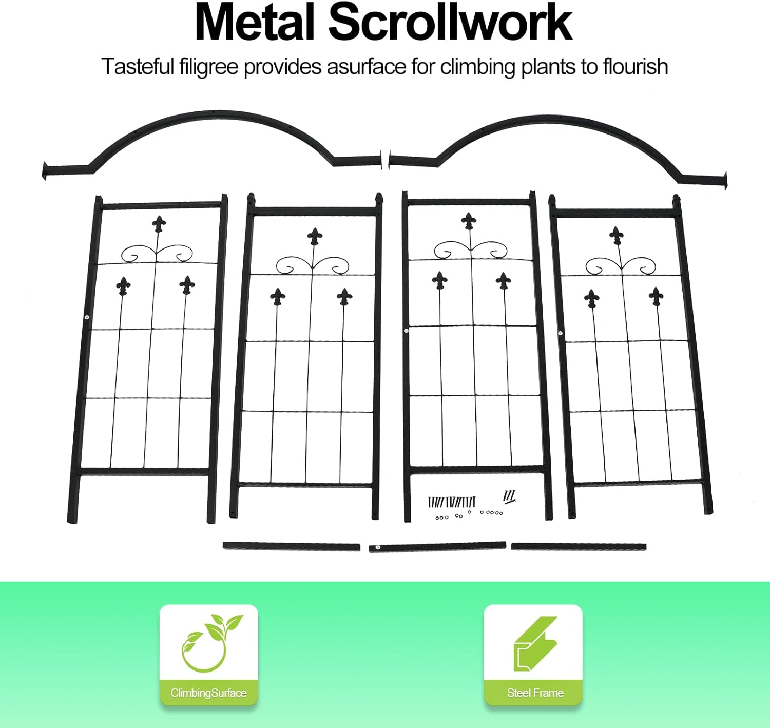 - Assembly Dimensions: You can easily assemble a wide arch( : 44.3"(L) x 17.8"(W) x 92"(H)) . It is suitable for a variety of spaces,with its dome design and classic yet modern aesthetic, this steel garden arch will surely turn heads and draw attention to any outdoor space.