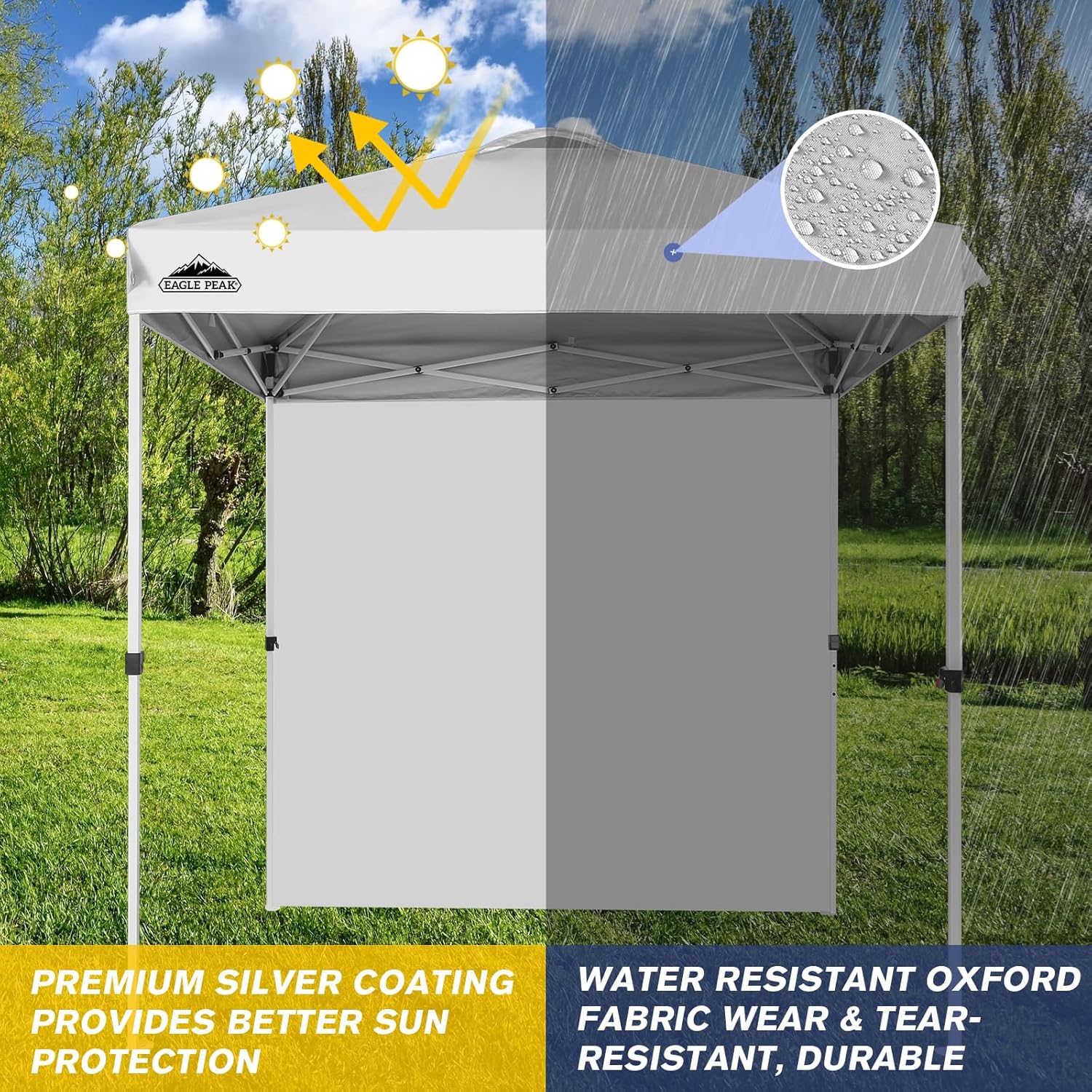 EAGLE PEAK Pop Up Canopy Tent with 1 Sidewall, Easy Setup Event Tent, Outdoor Sun Shade, Wheeled Carry Bag, Stakes and Guy Ropes, Instant Canopy 6.6x6.6, White