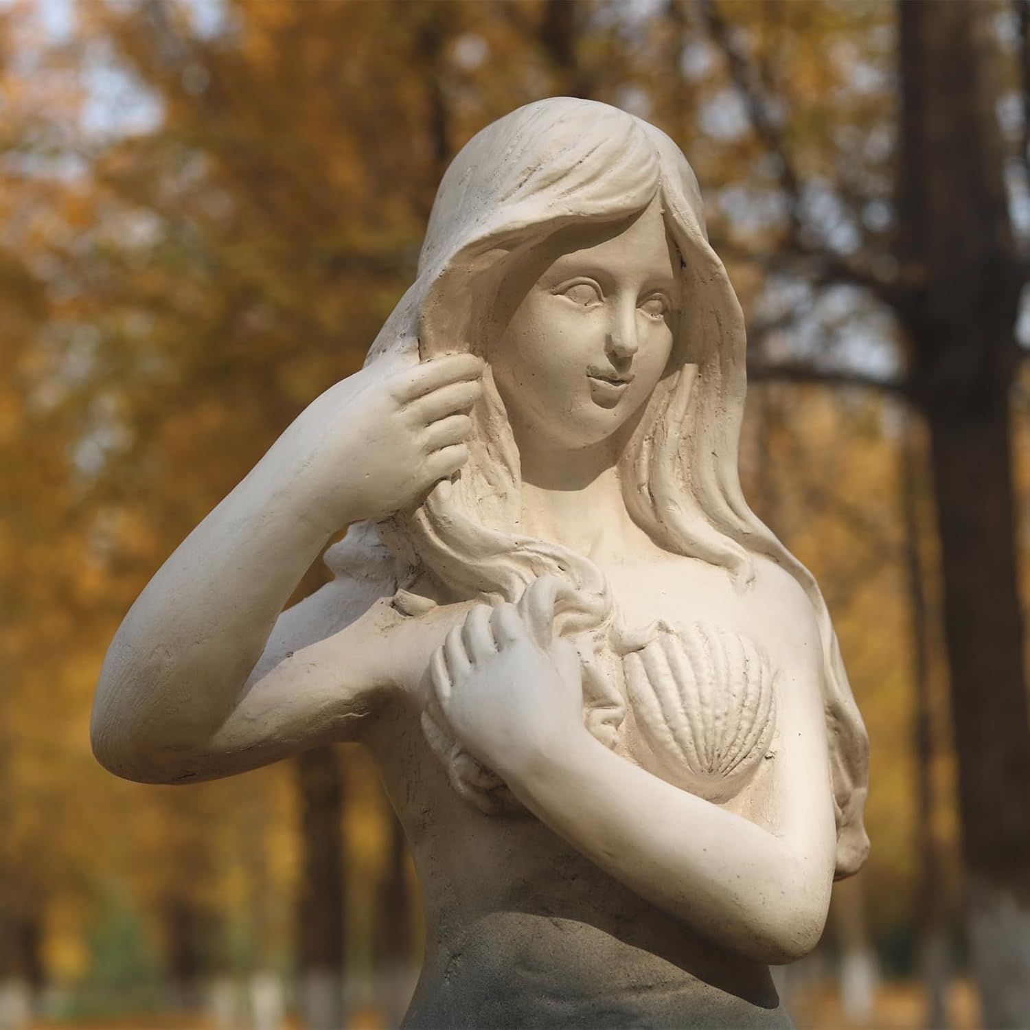 - Sturdy and Durable Material: Standing on a sturdy base, this mermaid sculpture is crafted from durable magnesium oxide, ensuring resilience against the elements and long-lasting beauty, making it suitable for both indoor and garden decor.