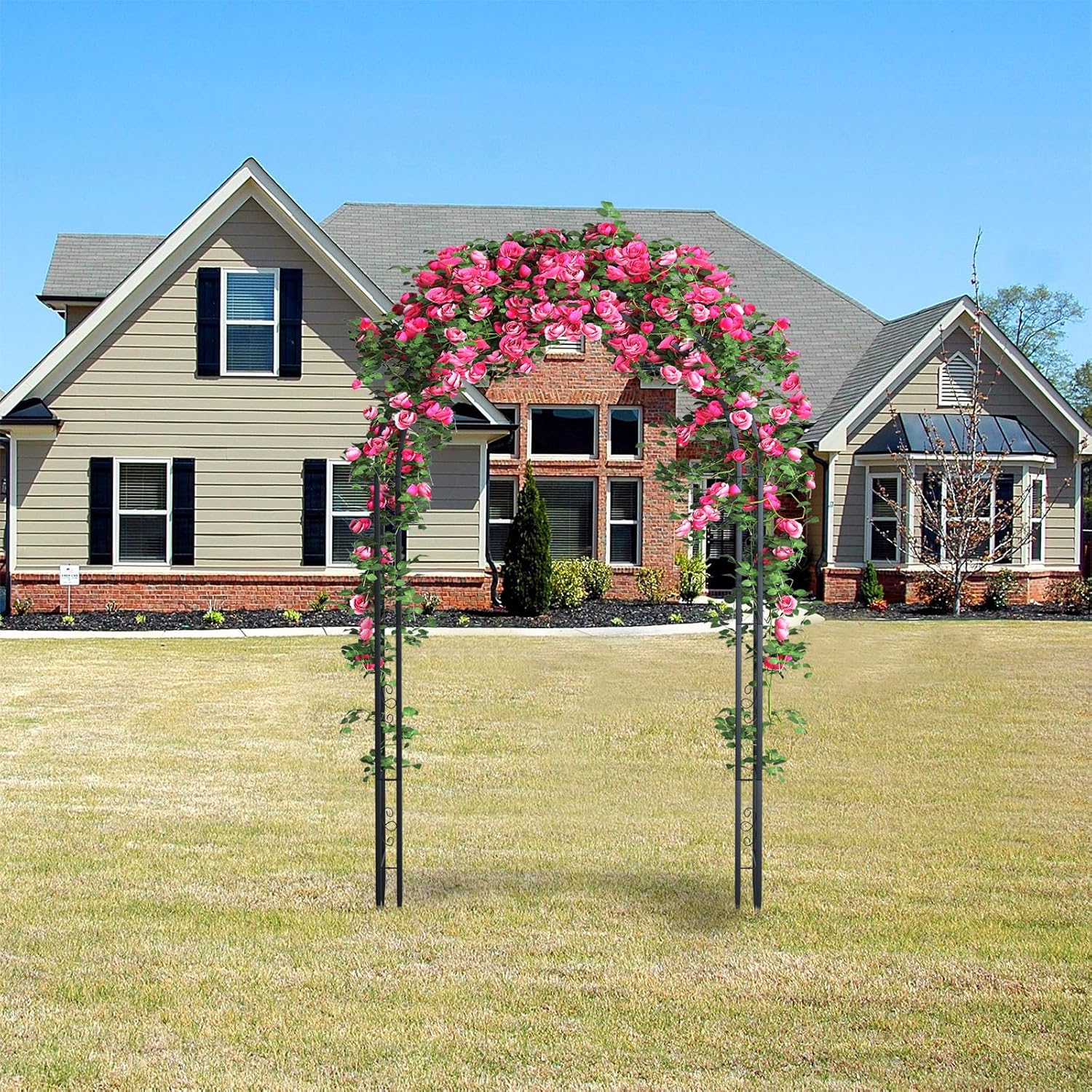 - 【A Plant Climbing Base】Featured with a mounting-plant-friendly shape, your vines, foliage, roses will happily find themselves flourish and bloom on this arch pergola.Straight standing arbor with lush green and intoxicating flowers on it, just can’t find anything better than this pastoral decoration.Whether It is Sunny or Rainy and Windy, It is Very Firm.