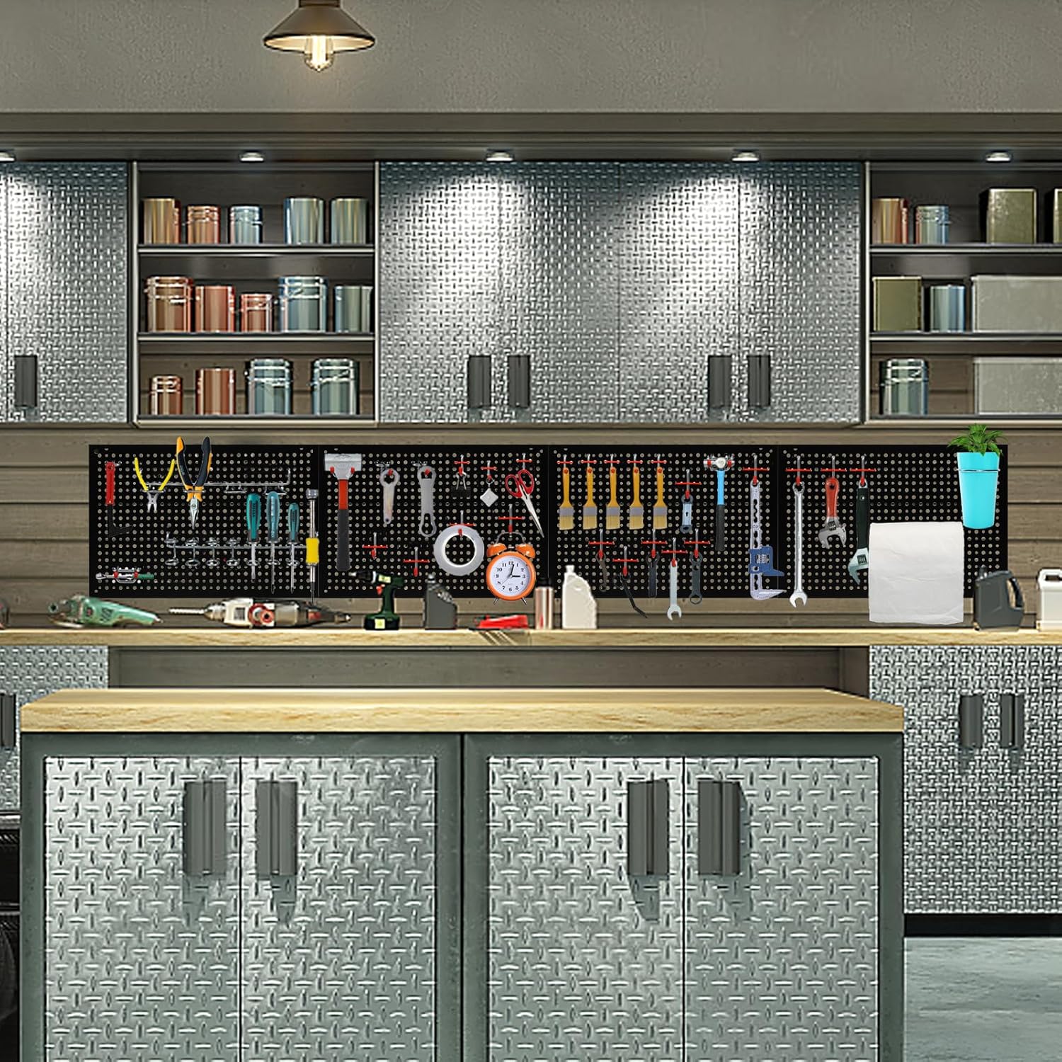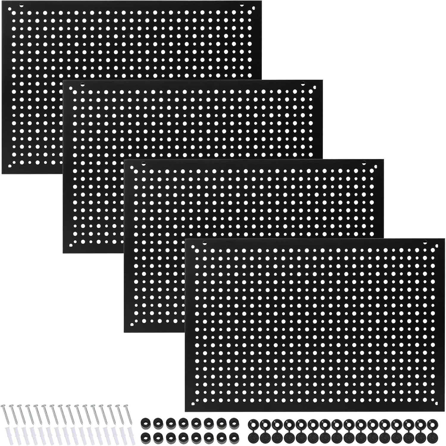 4 Pack Heavy Duty Steel Pegboard Garage Organization Panels,Universal 1/8 and 1/4 Pegboard Accessories,Suitable for Tool Storage,Garage Storage etc. (Black, 16X10.5)
