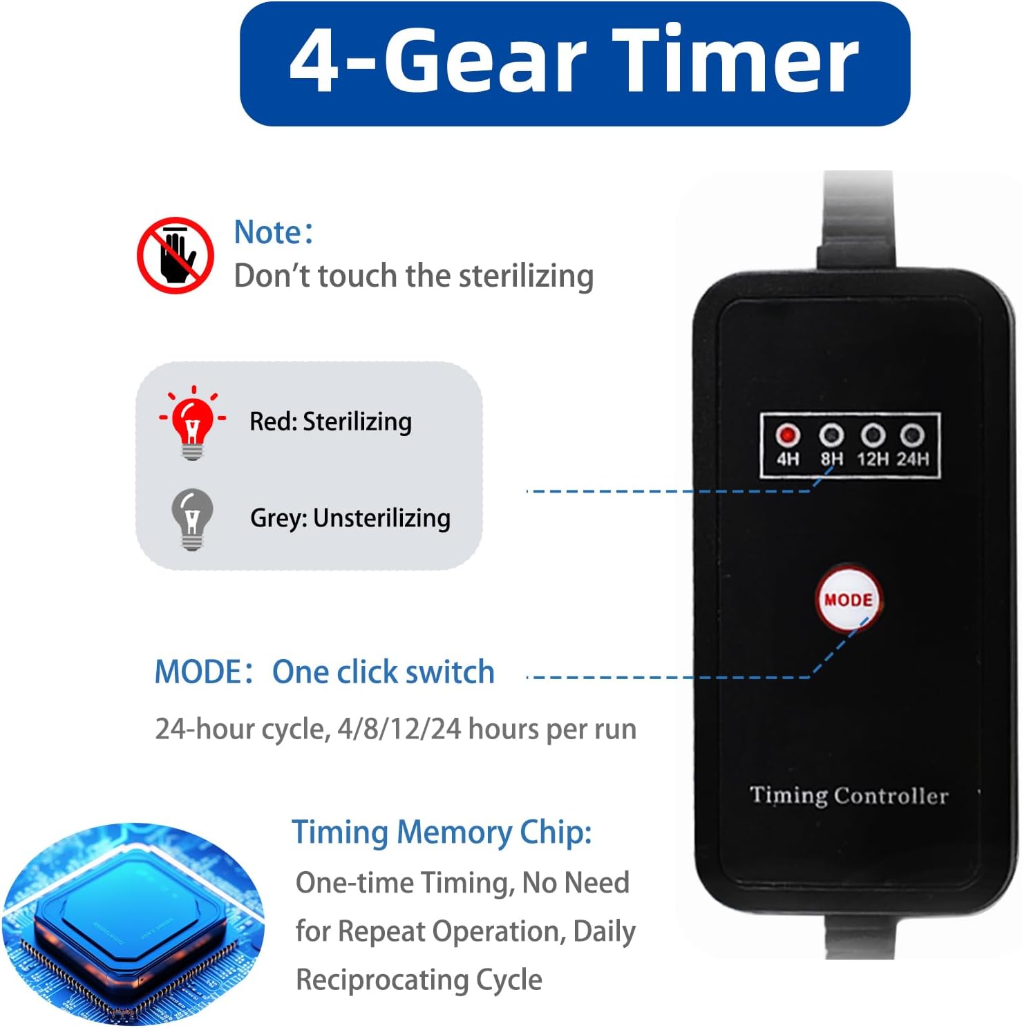 - 【Intelligent Timing Function】The aquarium filter includes a unique one-click timing function that is intelligent. Users can easily select from four different timing settings: 4 hours, 8 hours, 12 hours, and 24 hours, without daily adjustments. This feature enables personalized operations to meet various needs. Please refrain from touching the lampshade during the disinfection process.
