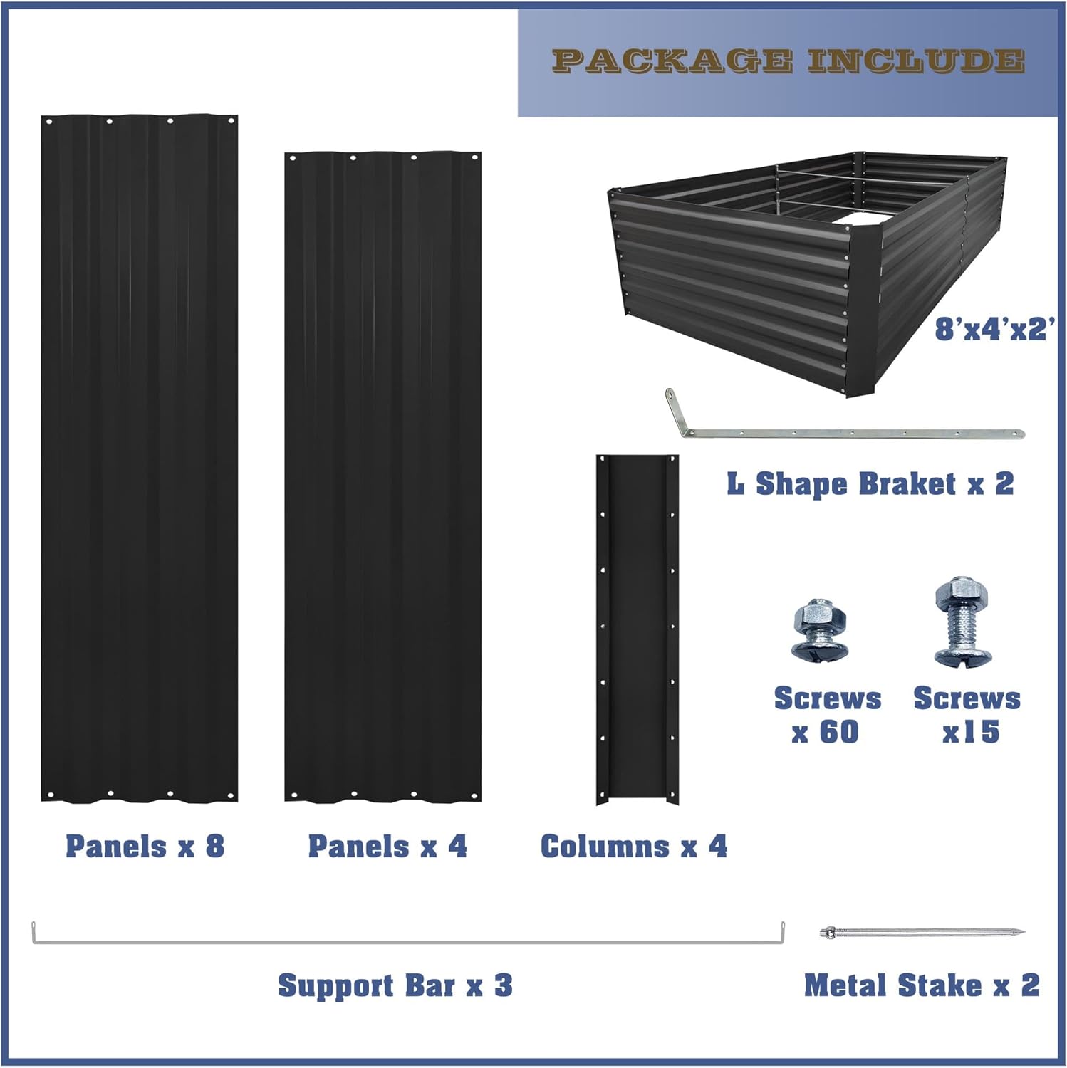 8x4x2FT Metal Raised Garden Bed Kit, Galvanized Outdoor Garden Bed Planter Box for Vegetables, Flowers, Herbs, Succulents and More, Black