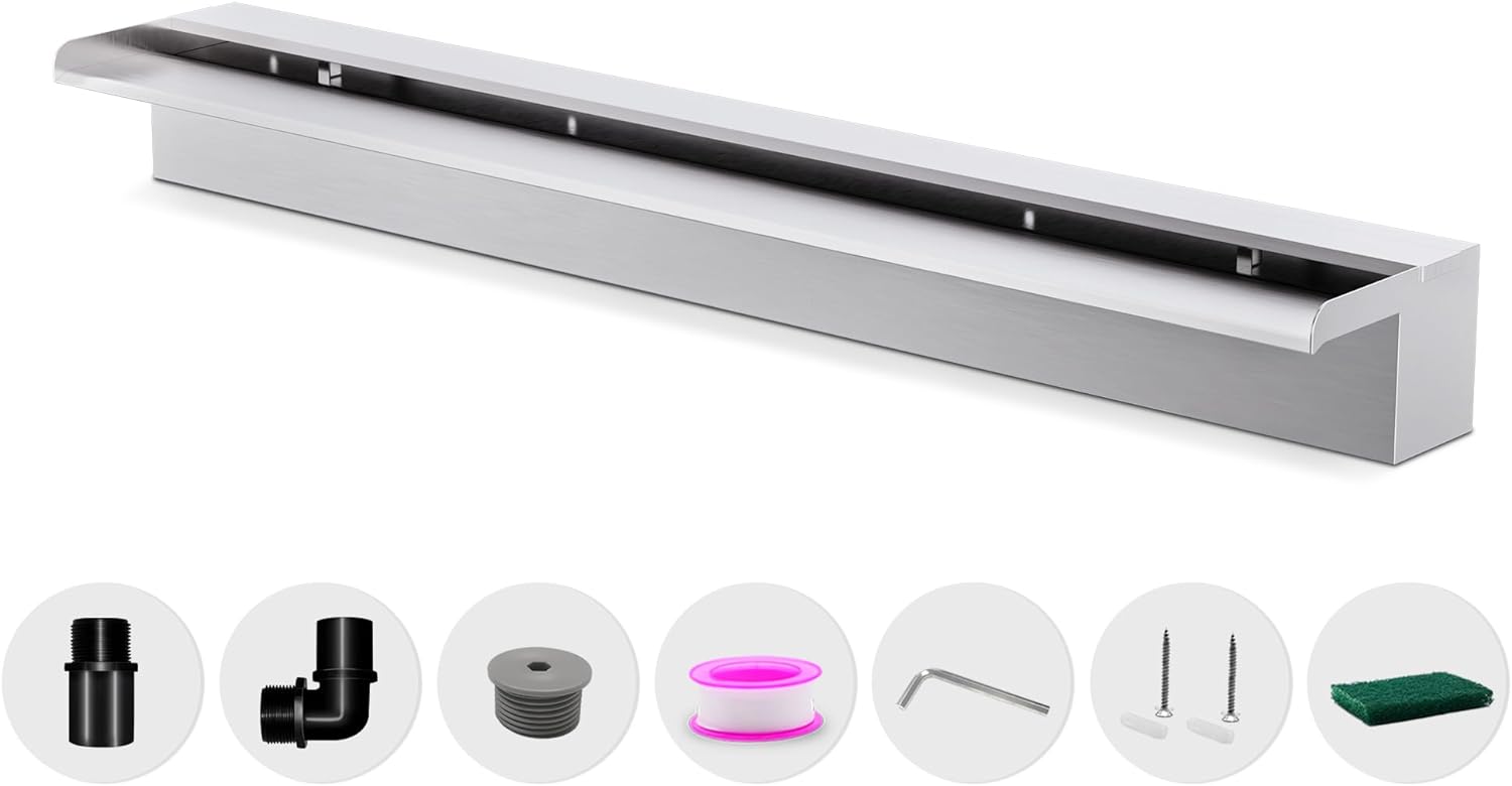 - ăOne Year Replacement Committmentă- This elegant cascading water feature requires a separately obtained pump for operation. We stand behind our products, and our dedicated support team is available to address inquiries regarding this product, offering prompt responses within a day. Please browse our other products for pool fountain accessories in our store. Waterfall only. LED light strips additional purchase.