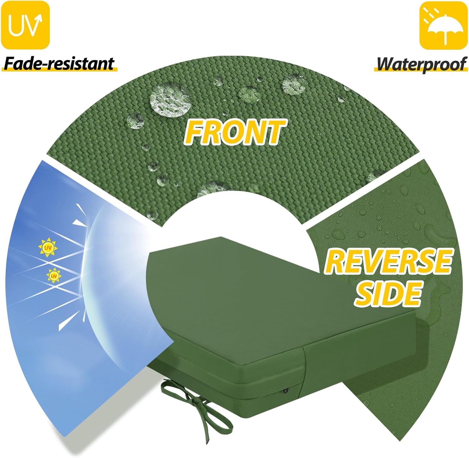 - Waterproof & Removable Cover: Durable, breathable polyester with a waterproof coating, UV protection, and fade resistance for lasting outdoor use. The zippered cover allows easy cleaning and replacement, with hidden zippers for a seamless look