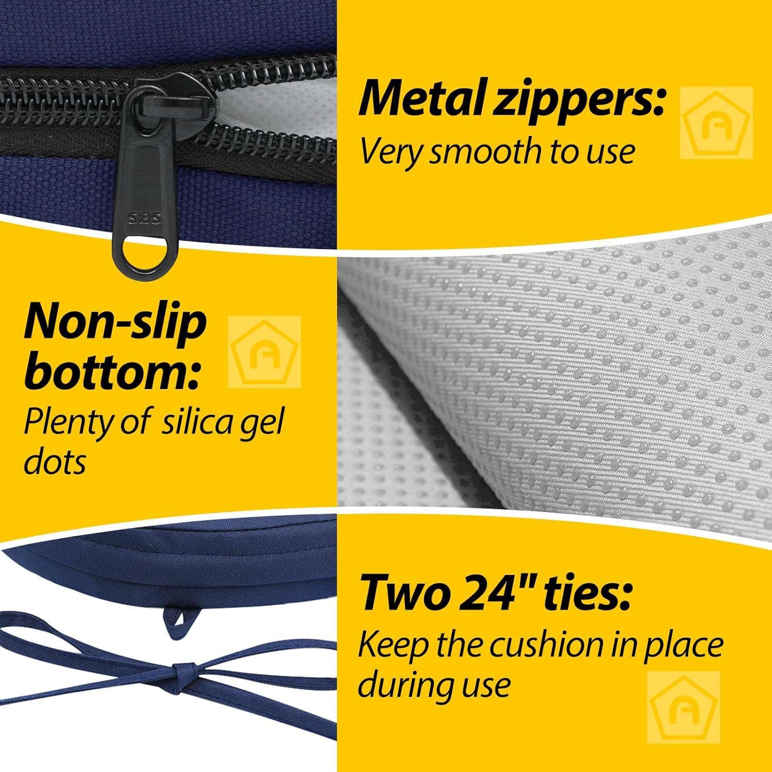 - Non-slip Ties and Piped Edge: The two non-slip ties can be fastened to your furniture to keep the outdoor cushion in place