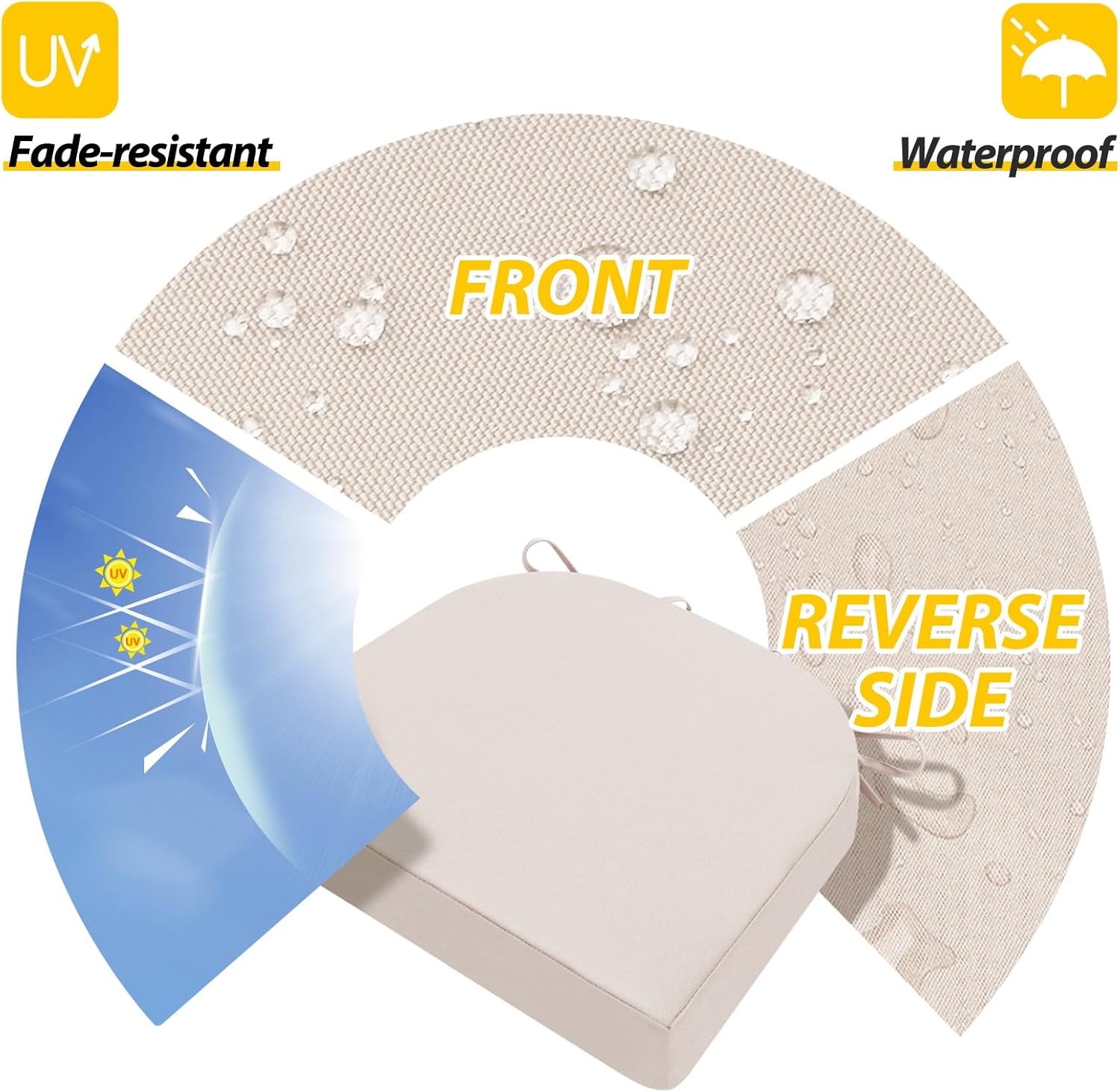 AAAAAcessories Outdoor Seat Cushions for Chairs, Waterproof, Fade-Resistant Patio Furniture Replacement Cushions, 17" x 16" x 2", Set of 2, Khaki Beige