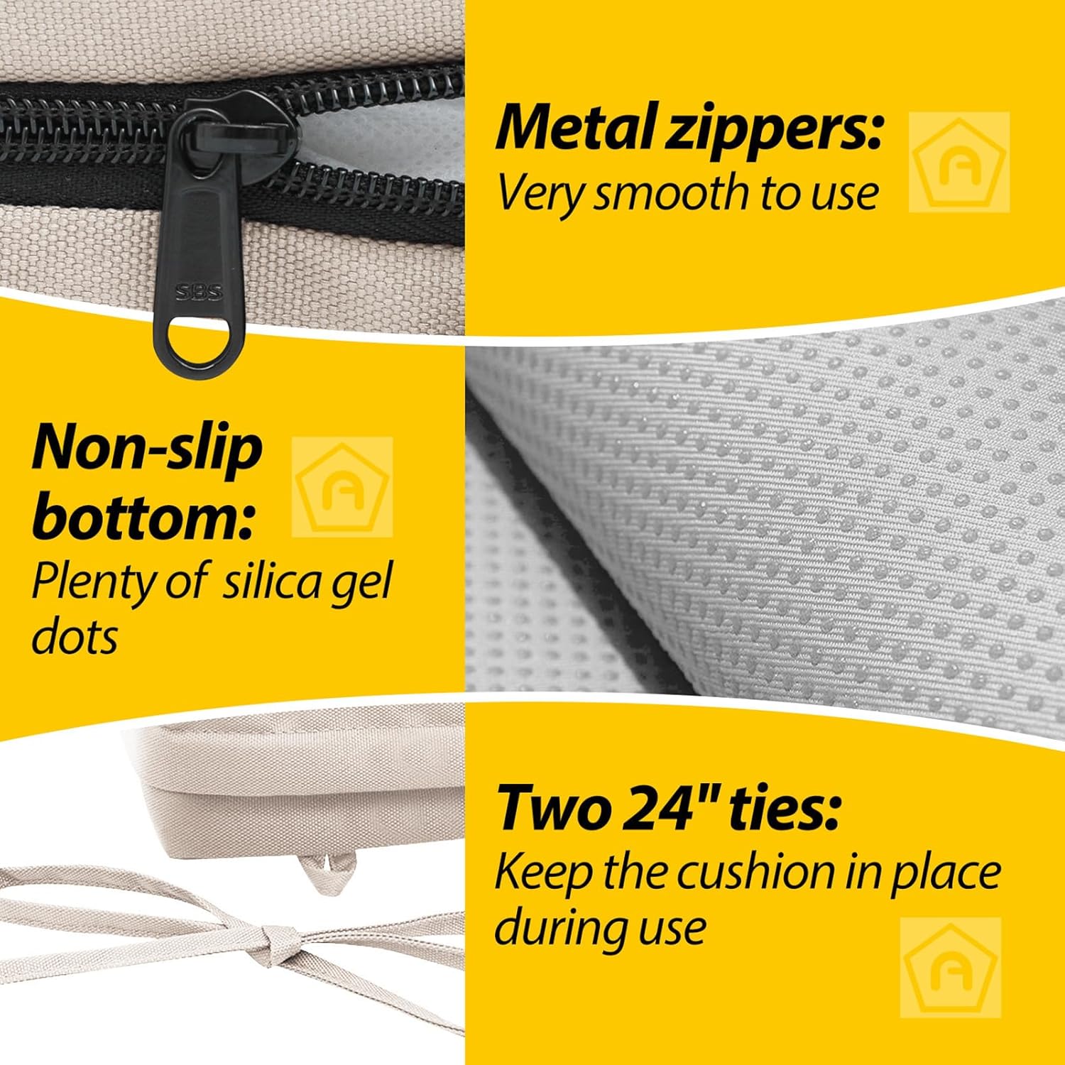 - Non-slip Ties and Piped Edge: The two non-slip ties can be fastened to your furniture to keep the outdoor cushion in place
