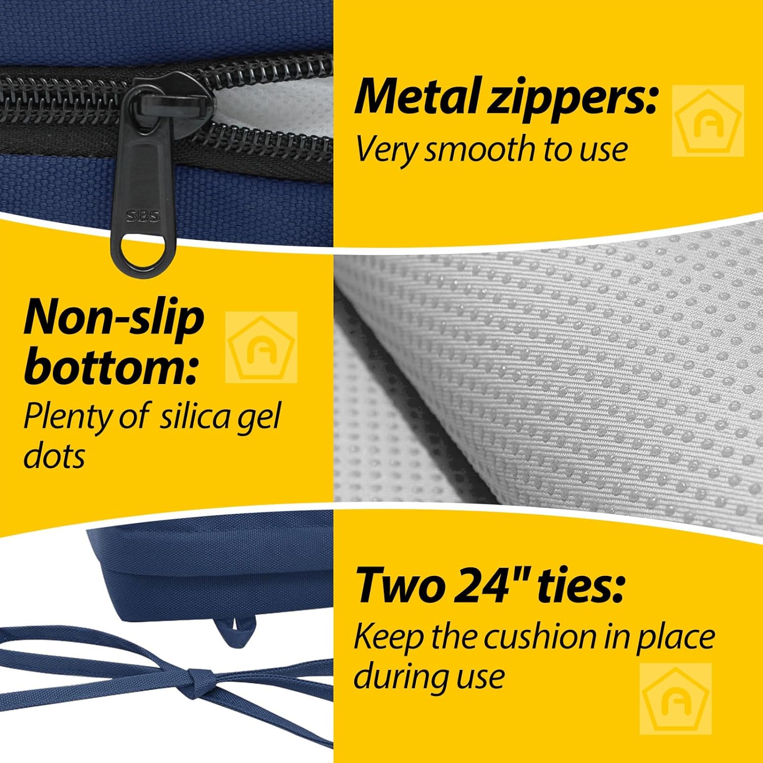 AAAAAcessories Outdoor Seat Cushions for Chairs, Waterproof, Fade-Resistant Patio Furniture Replacement Cushions, 21" x 21" x 4", Set of 2, Navy Blue