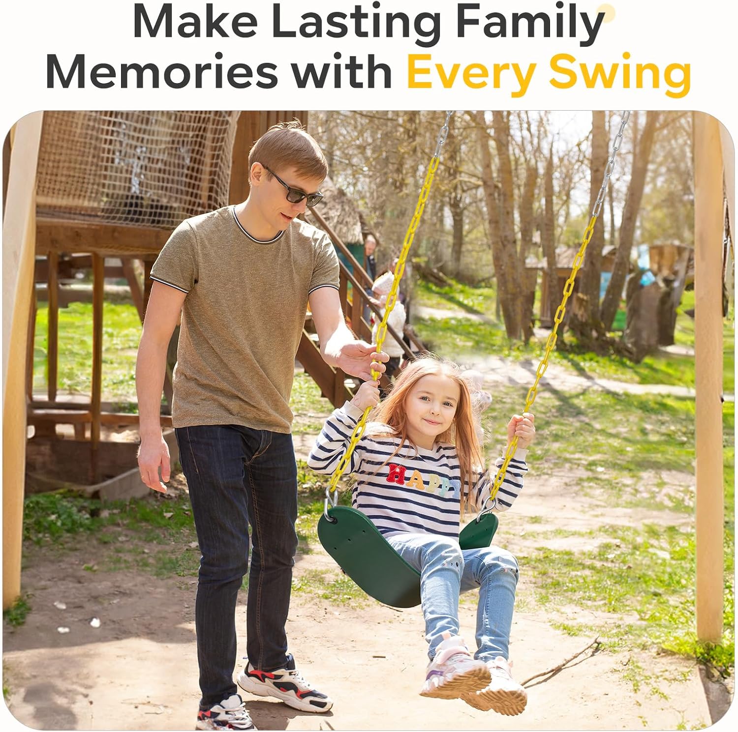 Decorlife Outdoor Swings Seats with 66" Rust-Resistant Heavy Duty Chain, Playground Swing Set Accessories Replacement Anti-Slip Seats, Backyard Swing Support 330lb for Kids or Adults (Green)