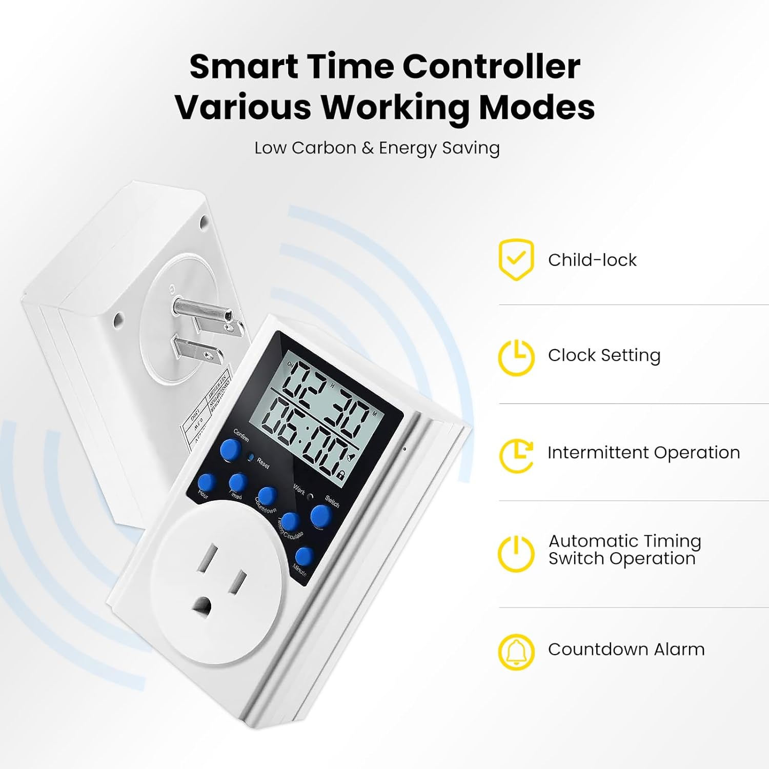 - Multiple Working Modes — Various timing functions could be set for energy efficient via the smart time controller such as automatic timing switch operation, countdown timer alarm, intermittent duty for the pond air pump aerator outdoor. The pond air pump could keep working without using the timer controller by manually turning on the switch after power on