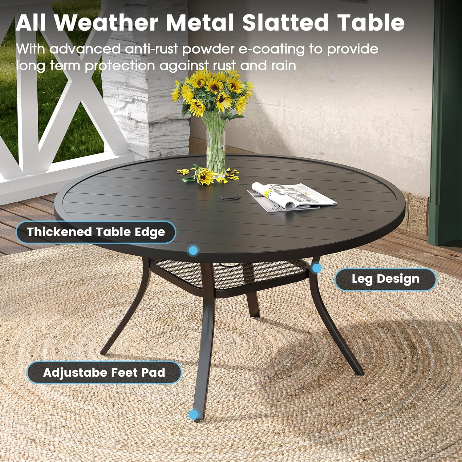 DIFY Patio Round Dining Table, 47.5" All Weather Round Outdoor Table with 1.57" Umbrella Hole for 6 Person, Perfect for Lawn Poolside and Backyard, Black