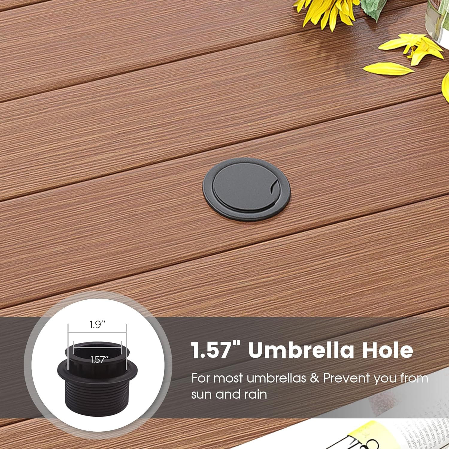 - 【Adjustable Umbrell Hole Design】Equipped with a 1.57"-1.90" adjustable umbrella hole, fits most umbrellas and prevents you from sun and rain