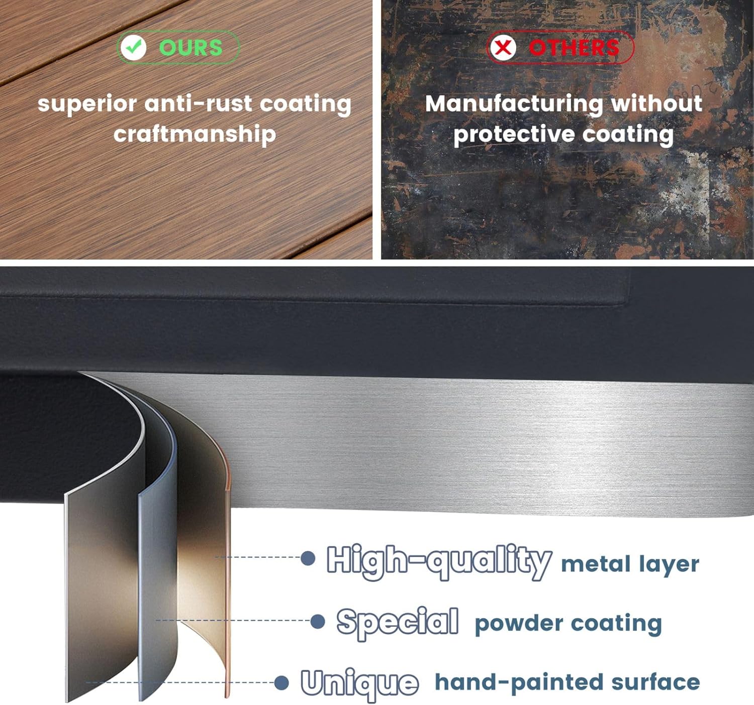 - 【Durable Construction】The table is made of sturdy metal with a weather-resistant, anti-aging, rust-resistant surface that is durable and easy to maintain