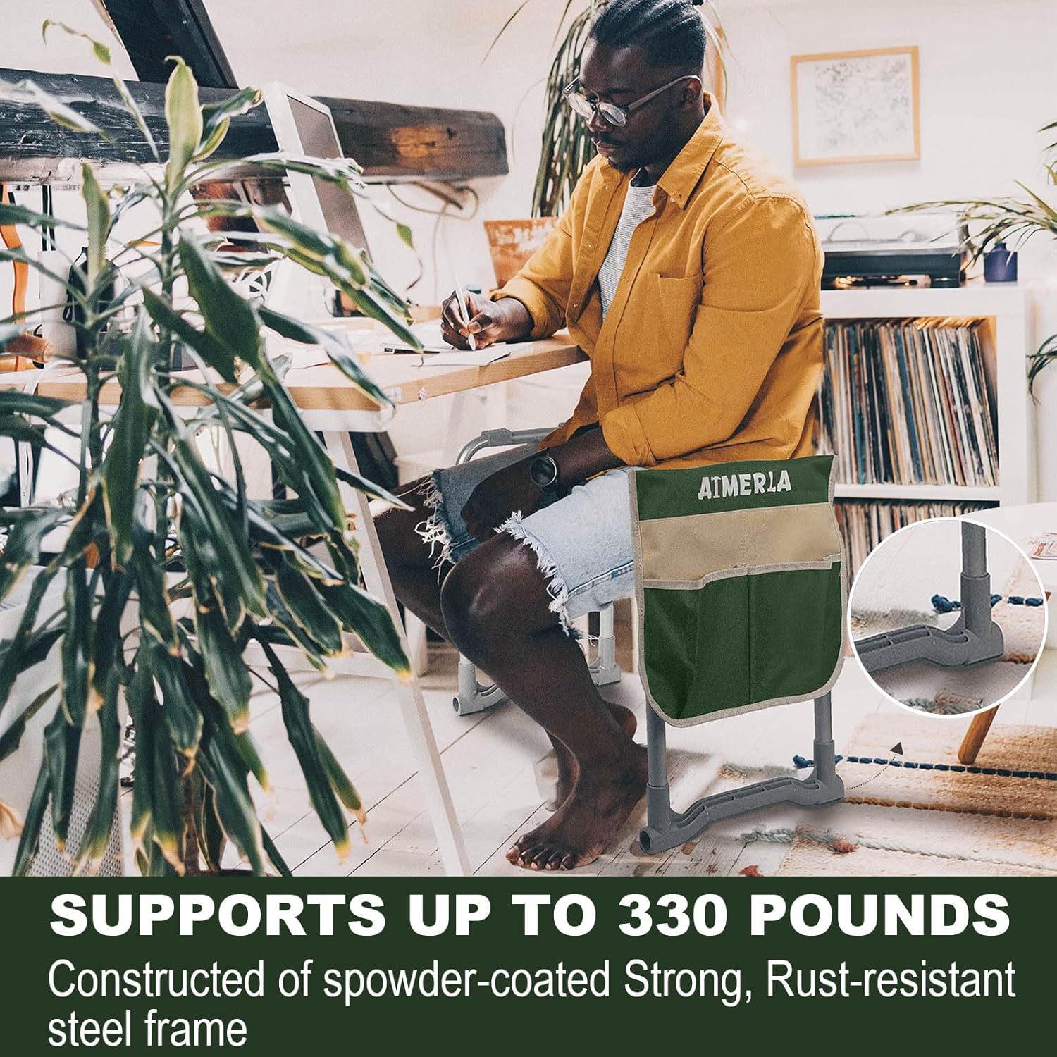 - REVOLUTIONARY INNOVATION = LIGHTER STRONGER STEADIER! This spowder-coated Strong, Rust-resistant steel frame make the kneeler stout against wear and tear are of the absolute Highest QUALITY that SUPPORTS UP TO 350 POUNDS!INNOVATIVE STABLE TOOL were added to the bottom of the chair keeps you stable in all environments. Enjoy grab and go convenience with this garden kneeler that weighs just over 6 lbs. It’s one of the best garden stool money can buy. You’ll wish you found this years ago!